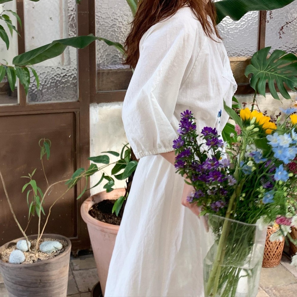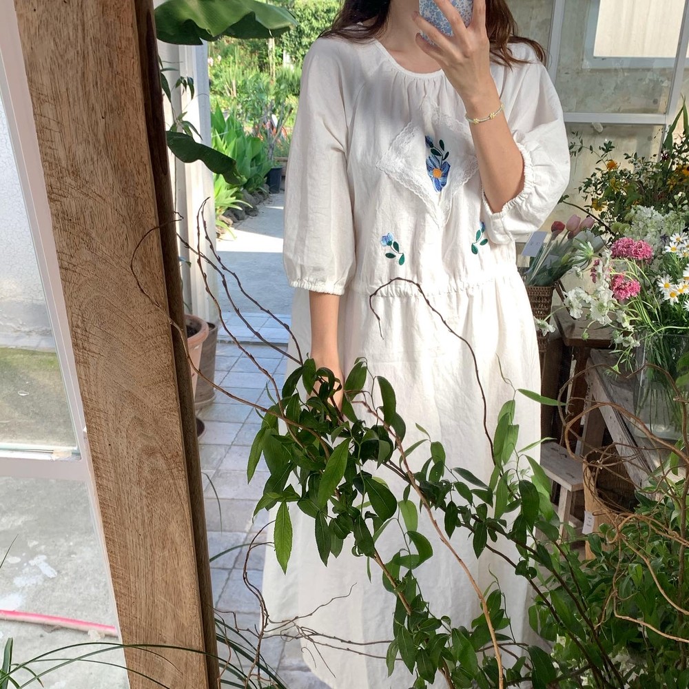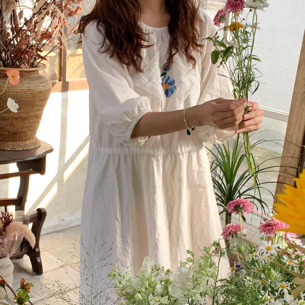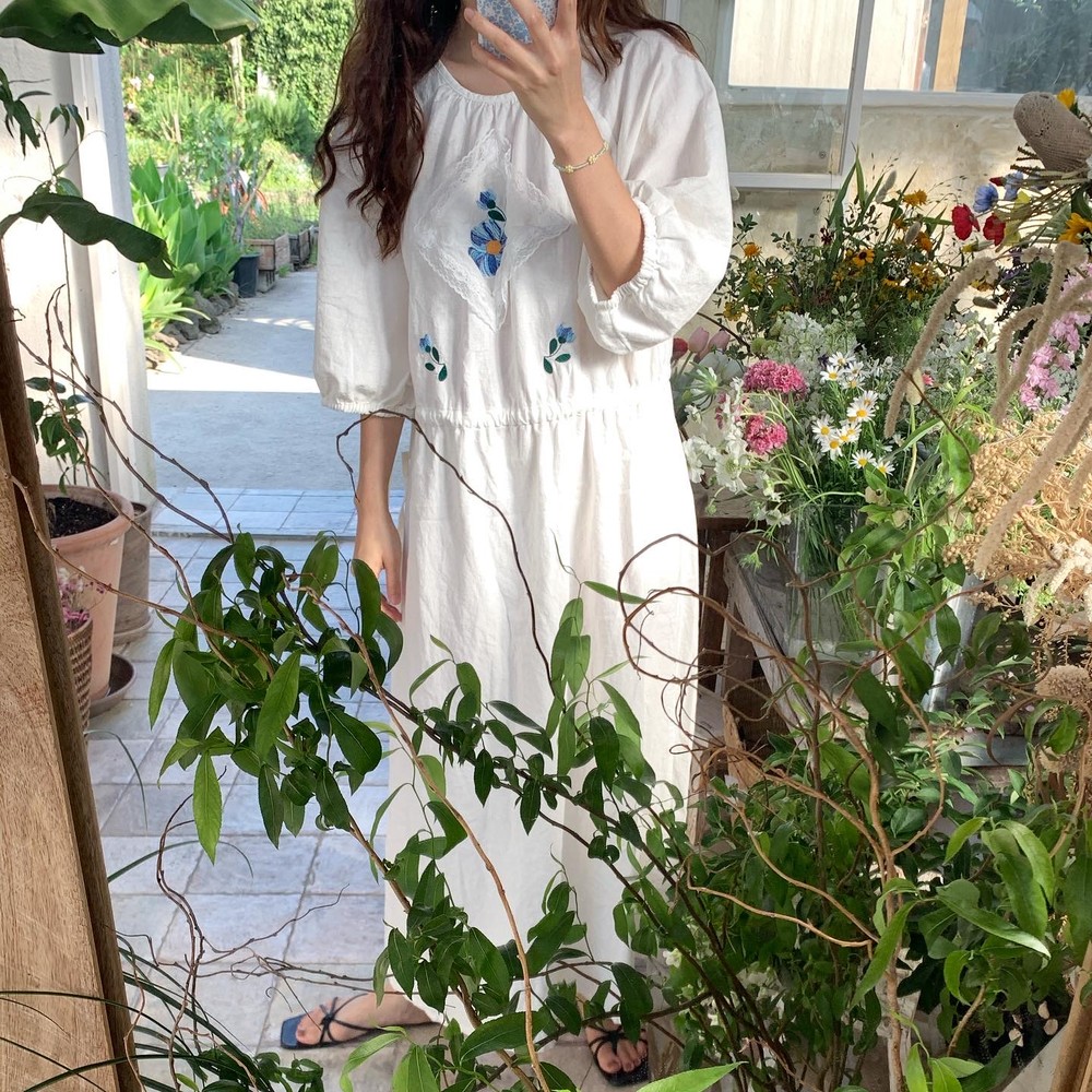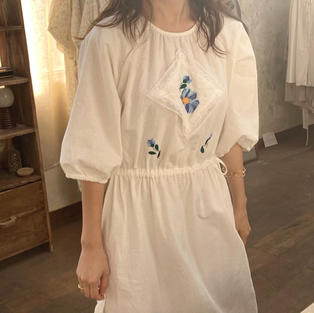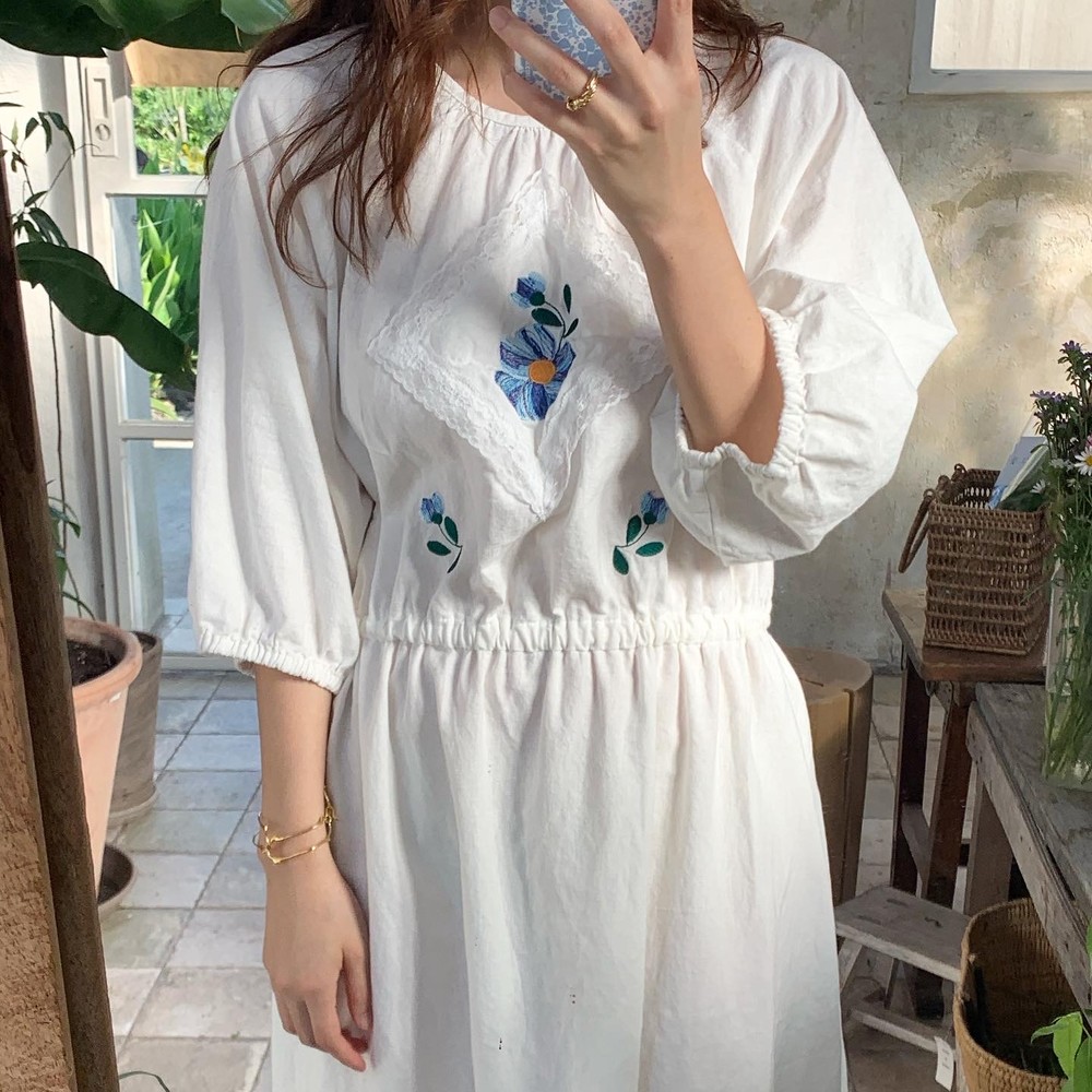 / 블루 자수 드레스 /