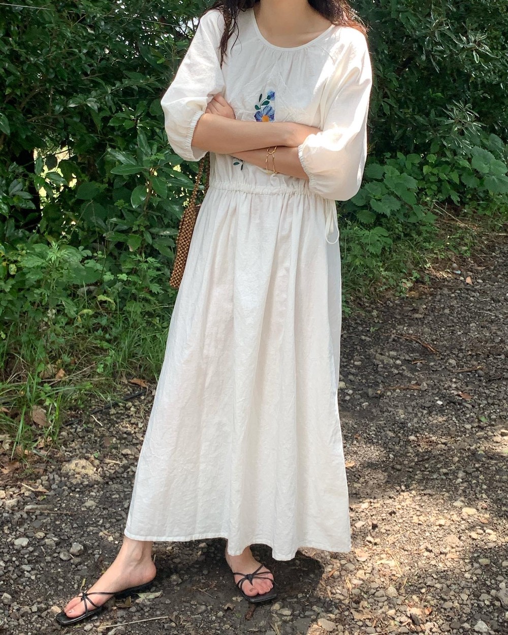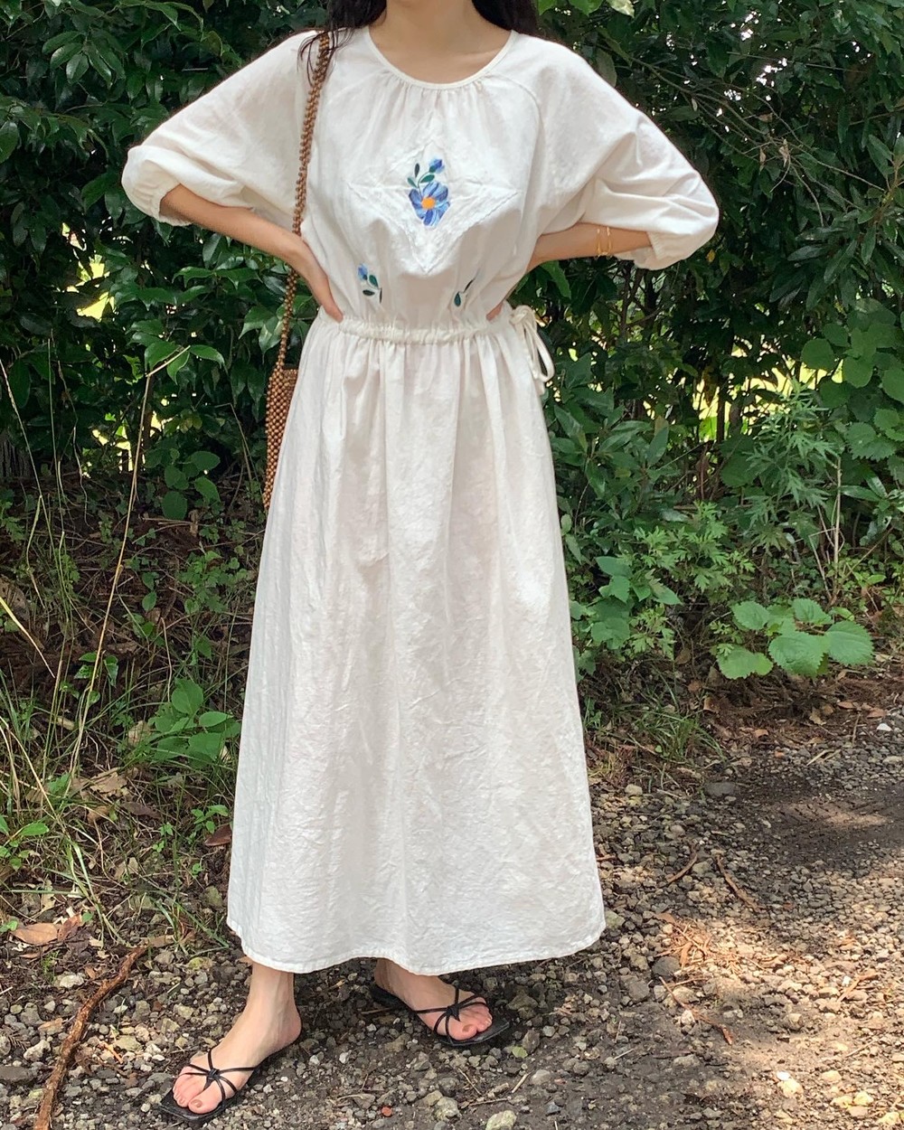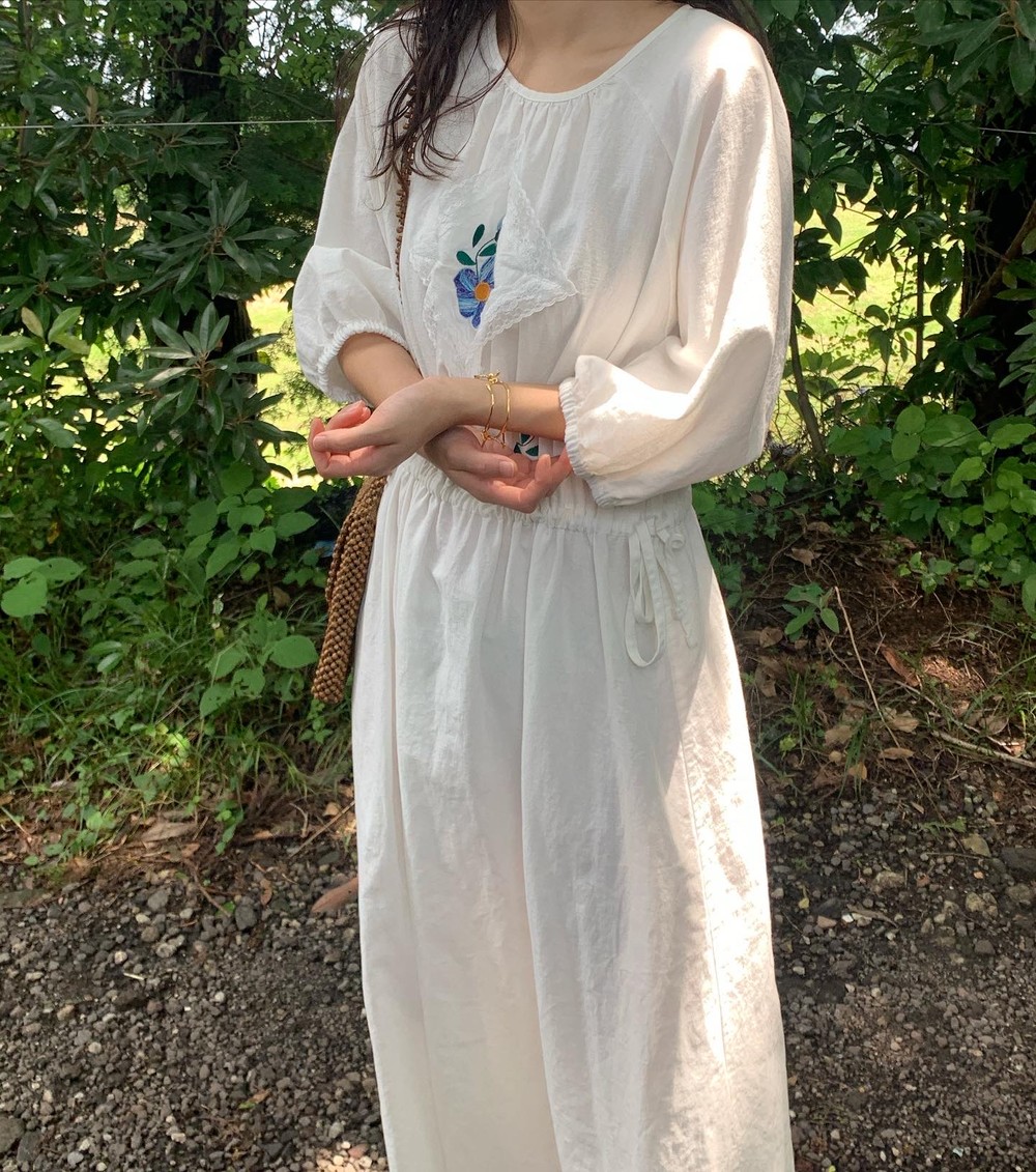 몸판 가운데 사랑스러운 자수가 있는데