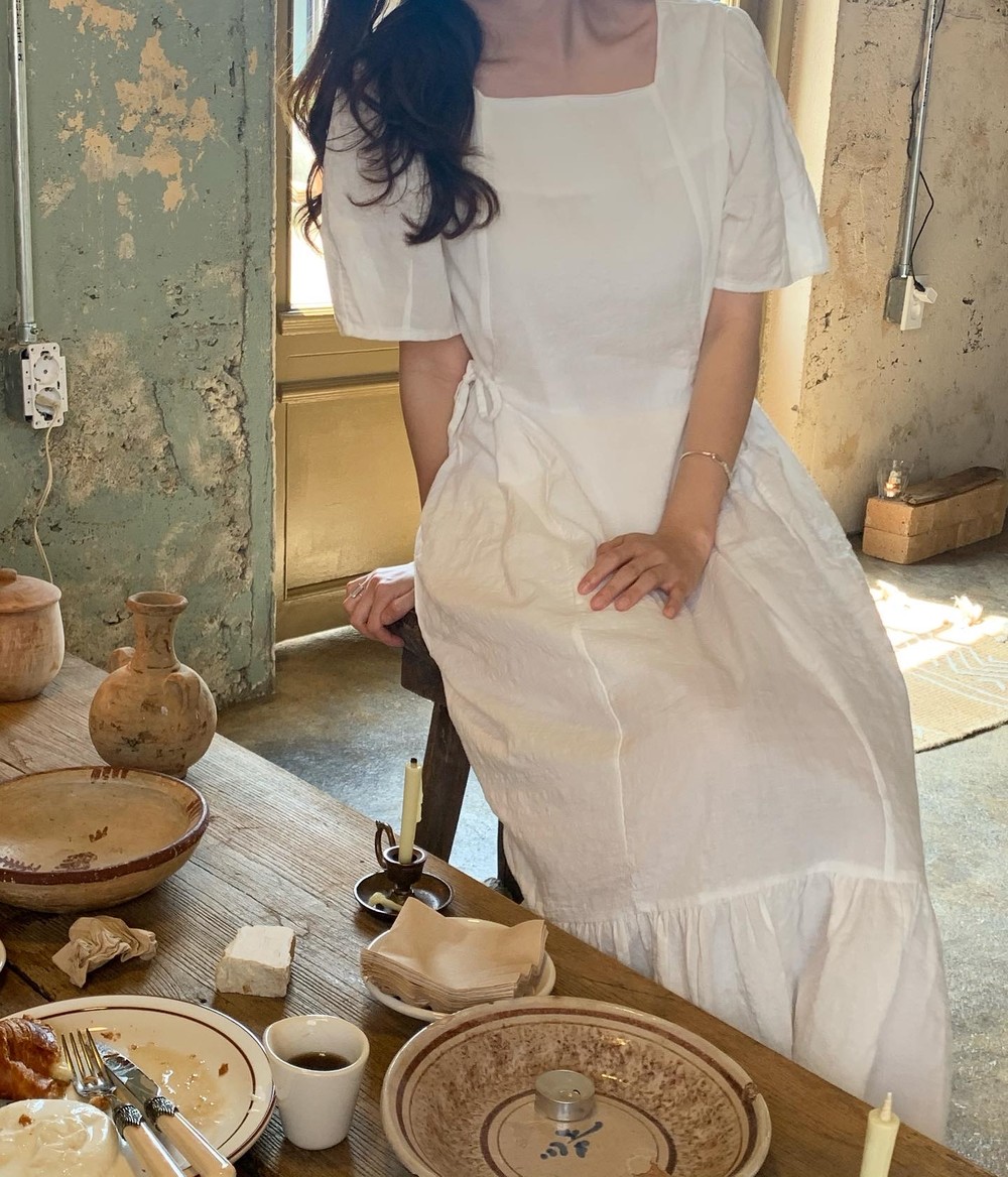 목선이 예뻐 보이는 스퀘어넥과 퍼프소매