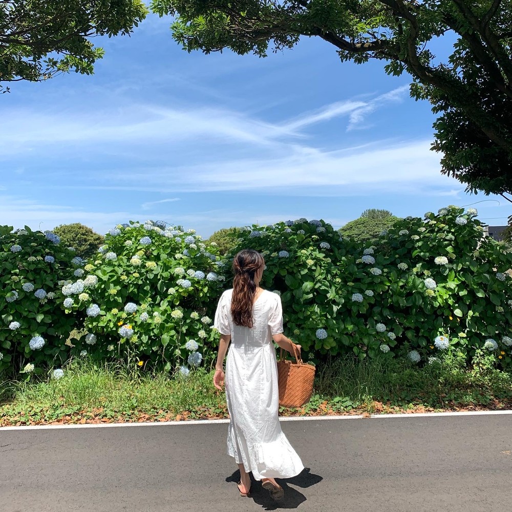목선이 아름다워 보이는 스퀘어 넥입니다
