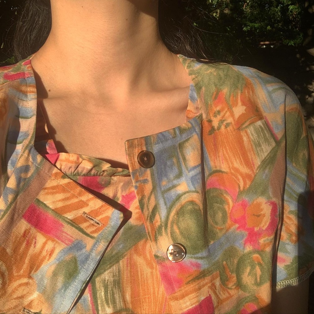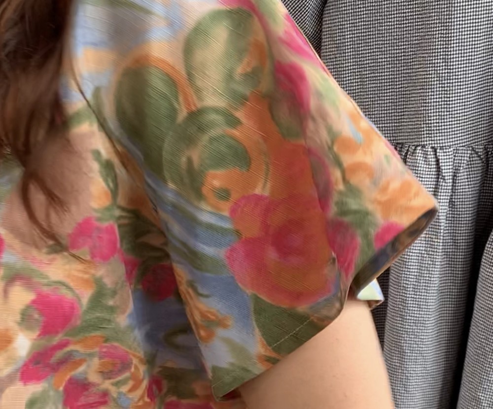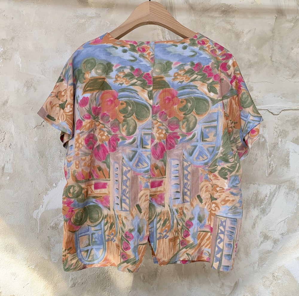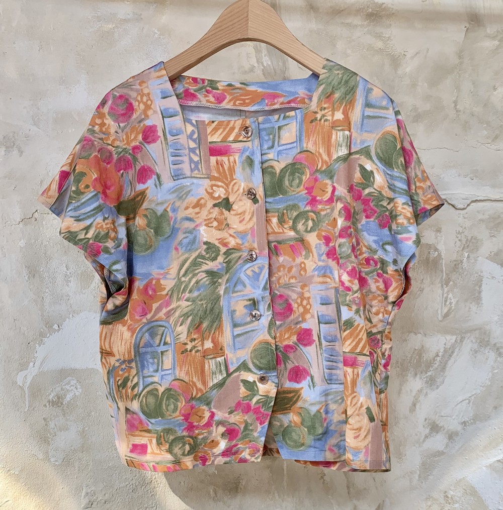 패턴에 키치한 느낌이 가득한 블라우스에요
