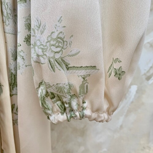 어깨는 셔링이 들어가있고 소매 끝 부분은 밴딩처리가 되어있어요