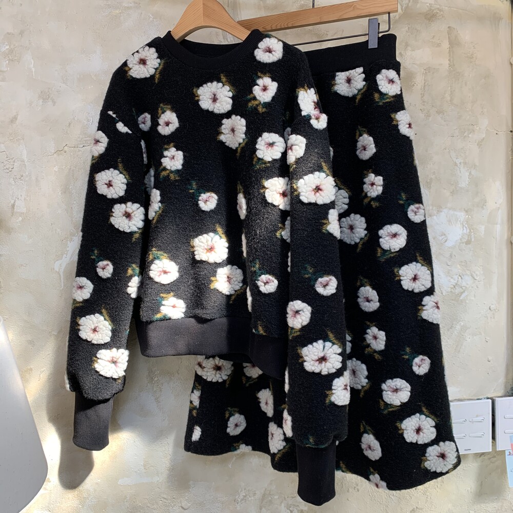 스웻셔츠와 A라인 스커트 셋업으로 구성했구요