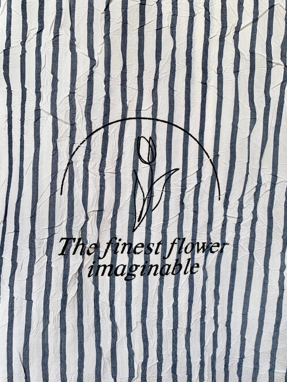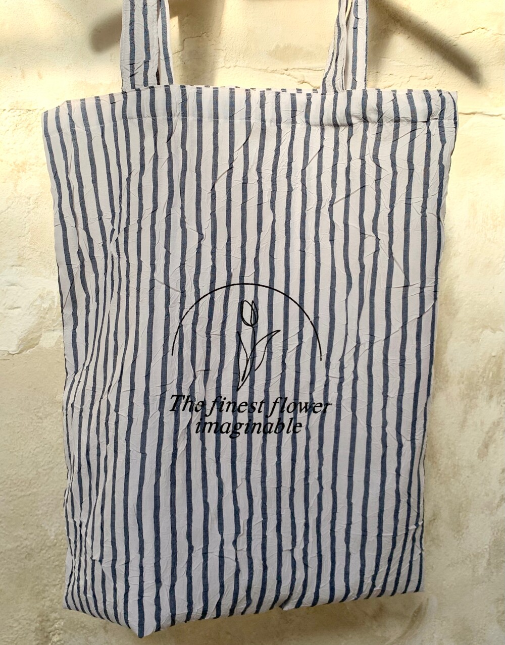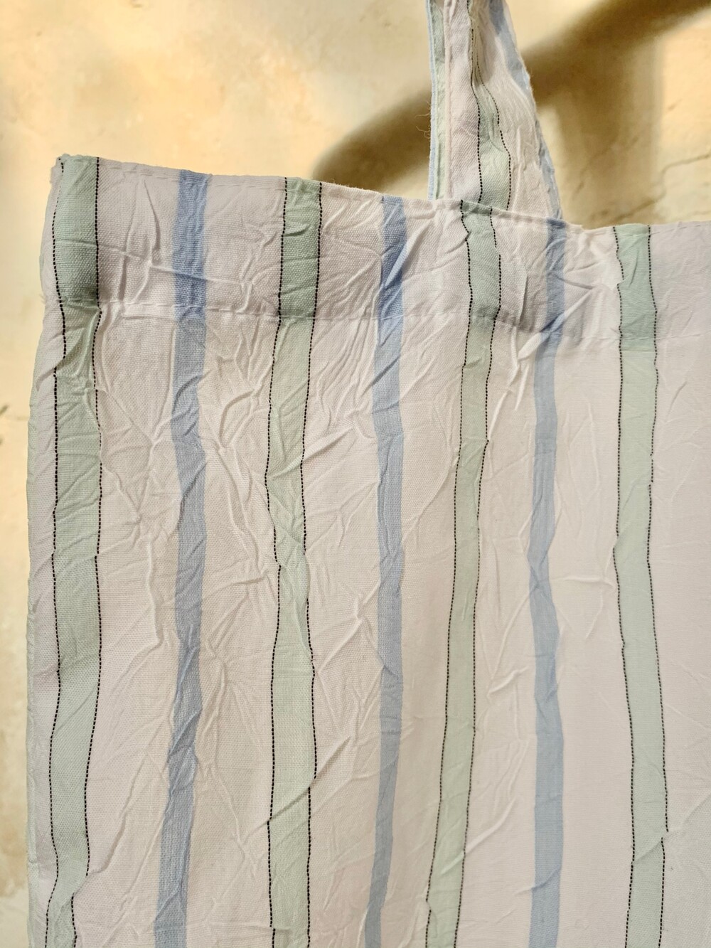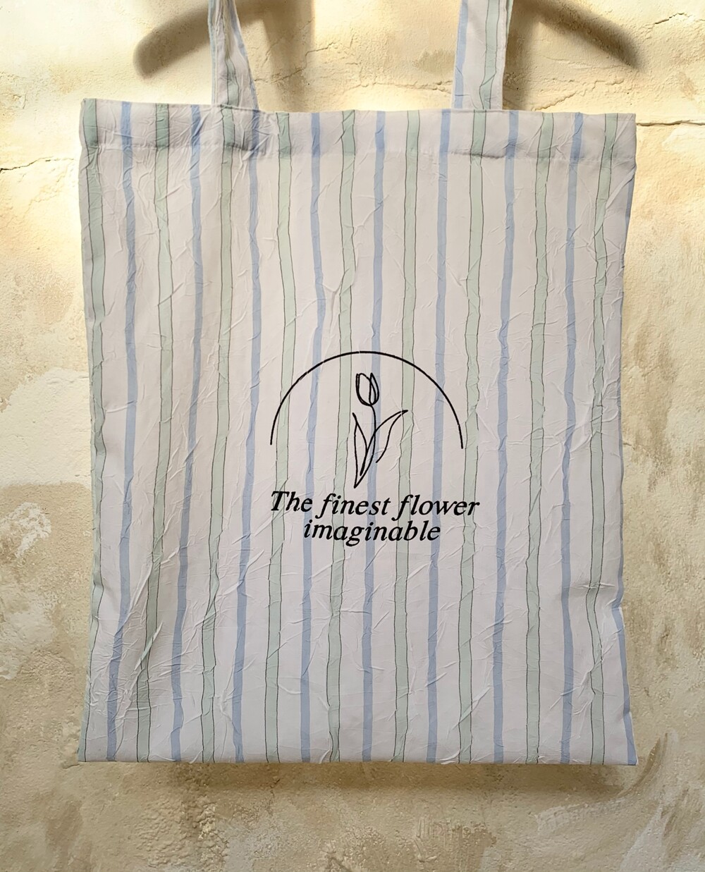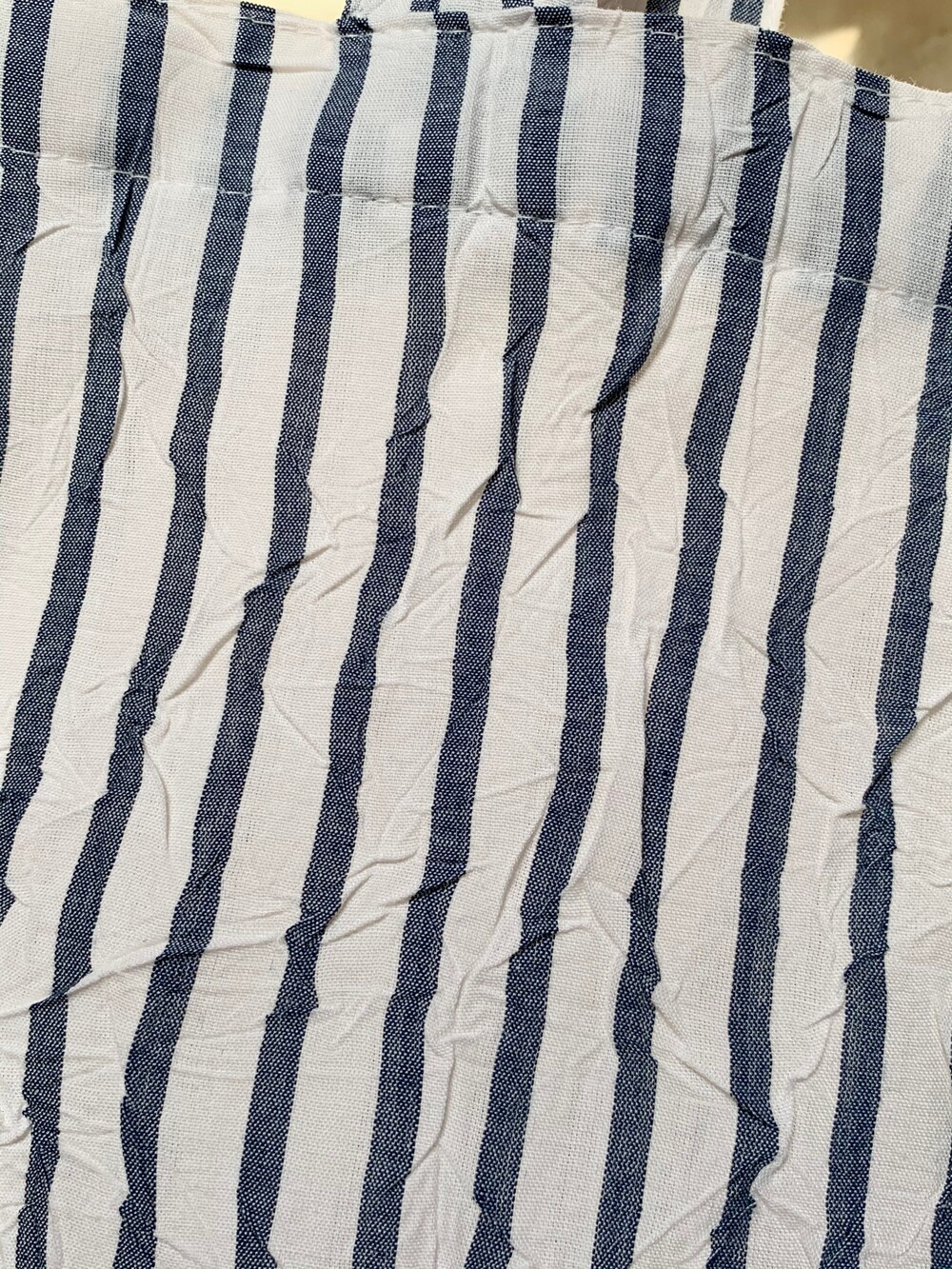 시원한 느낌이 드는 스트라이프 원단에는 블랙 프린트를