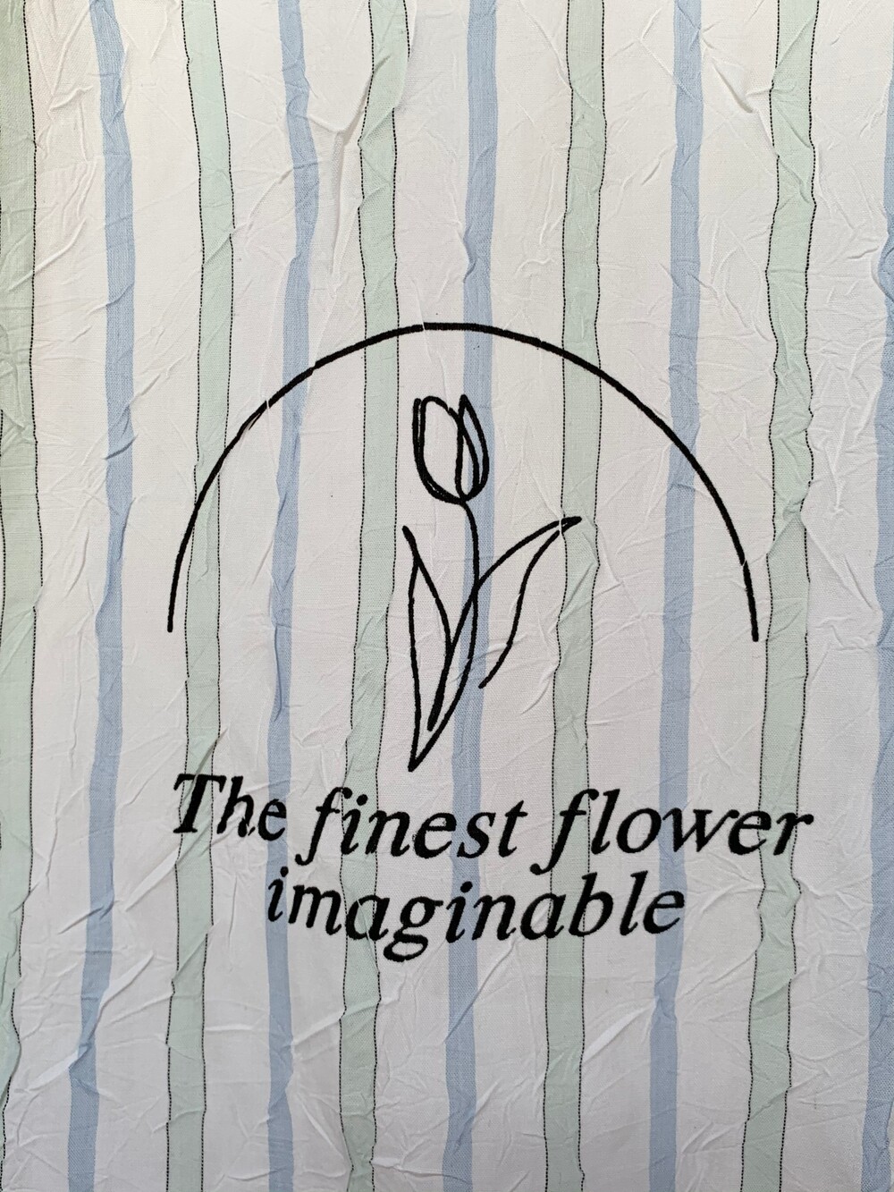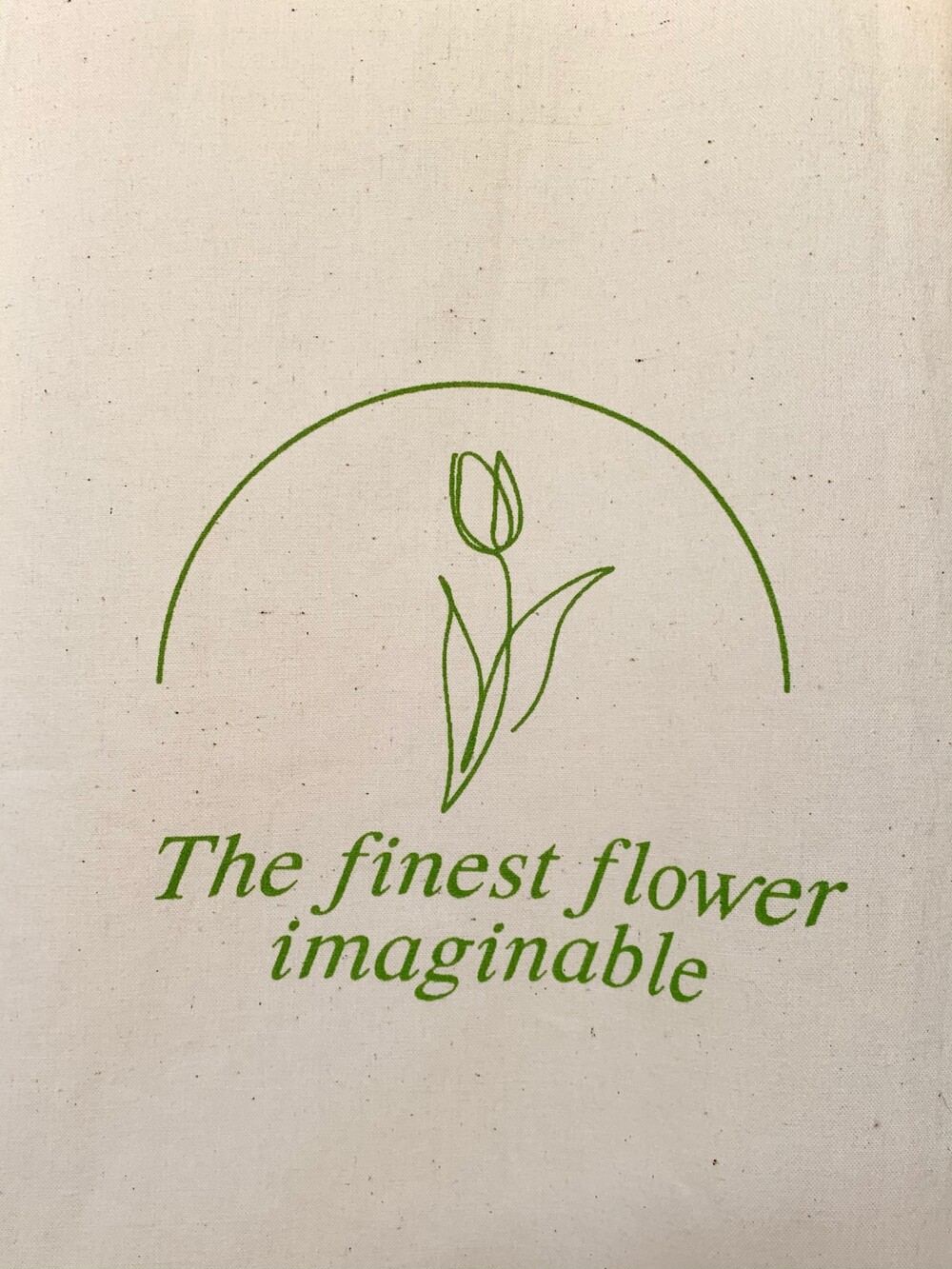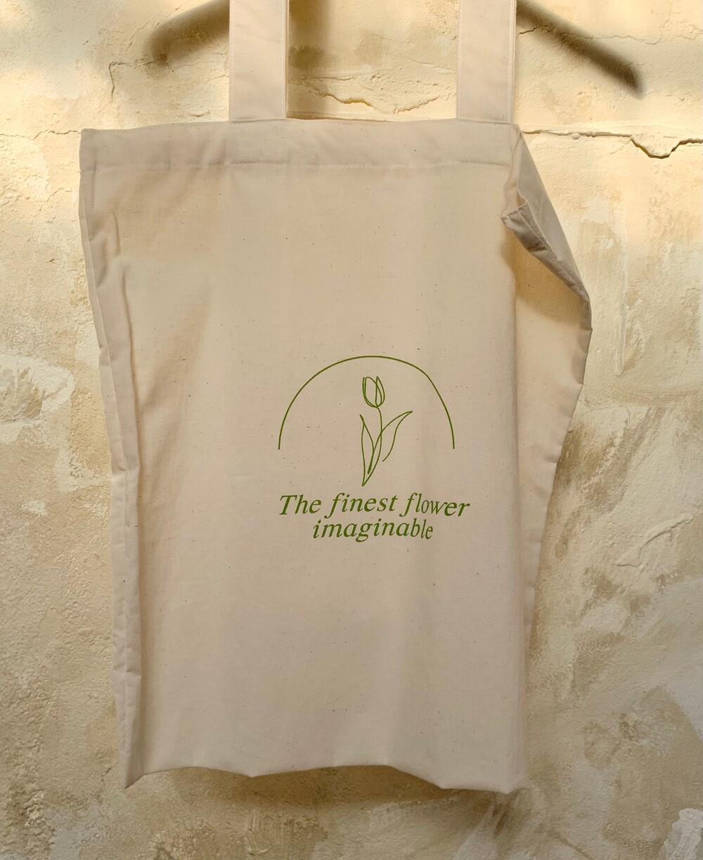 에크루(생지) 컬러 코튼 원단에는 싱그러운 연두색 프린트를