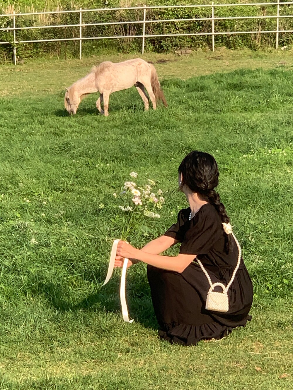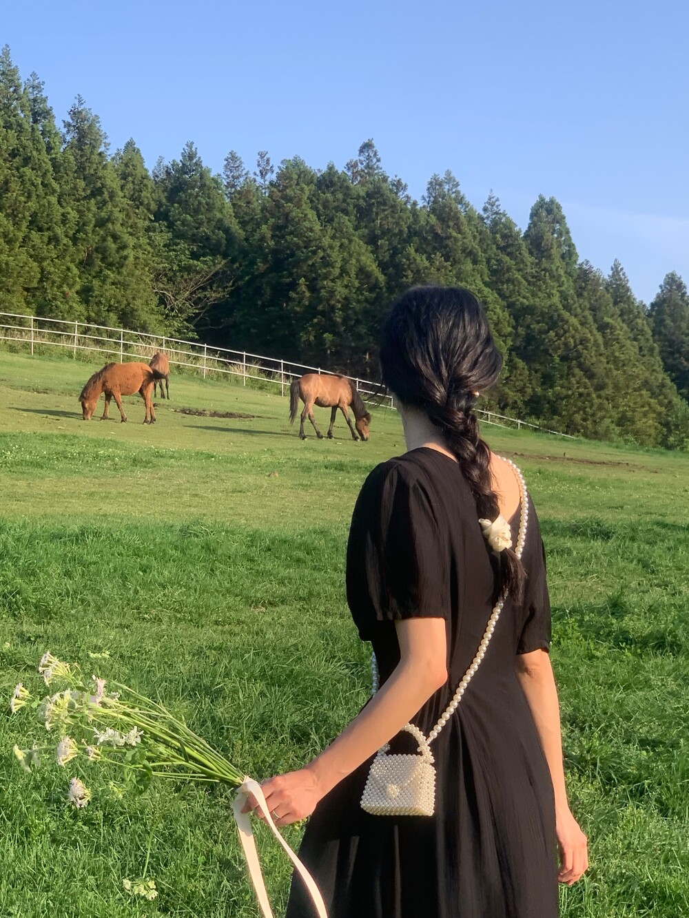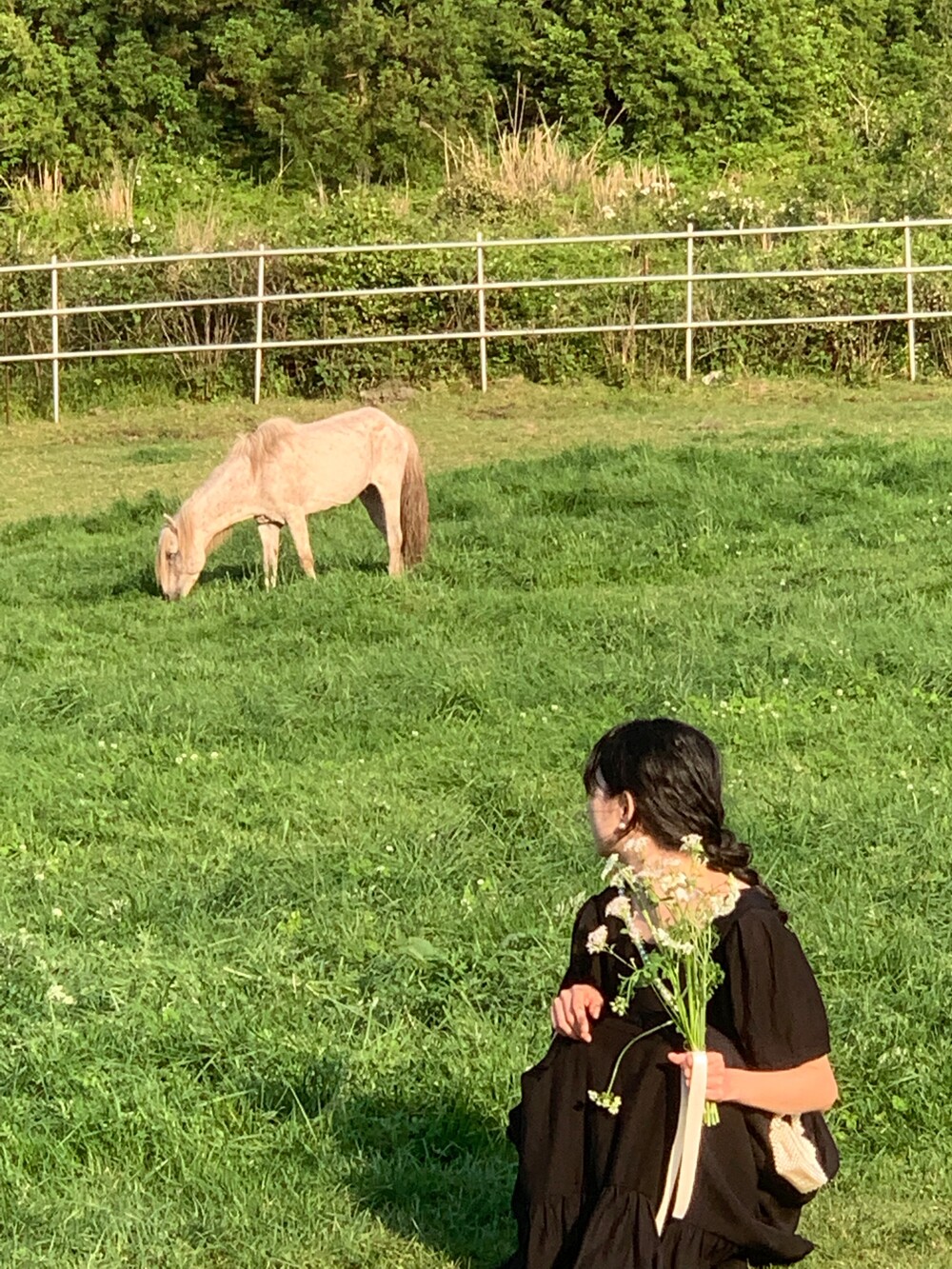 옷의 무드를 사랑스럽게 만들어주었어요.