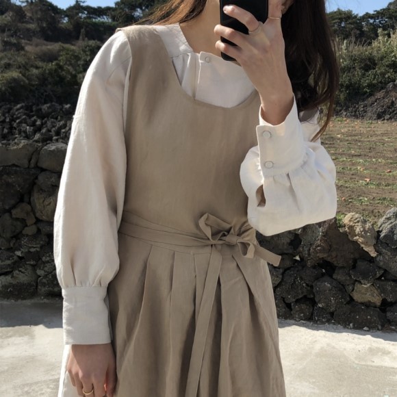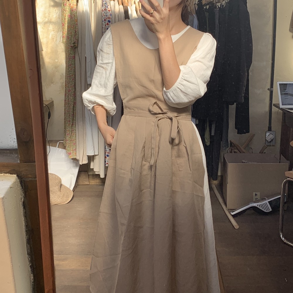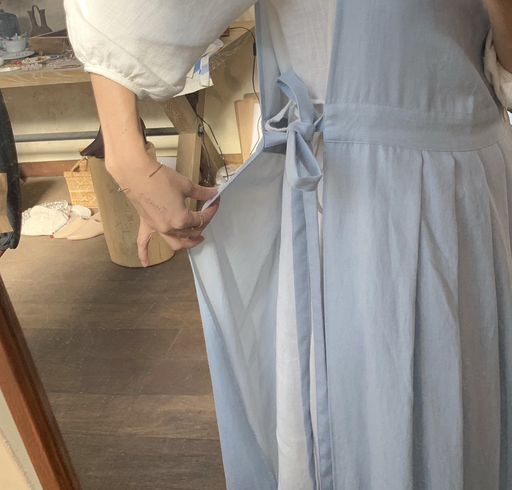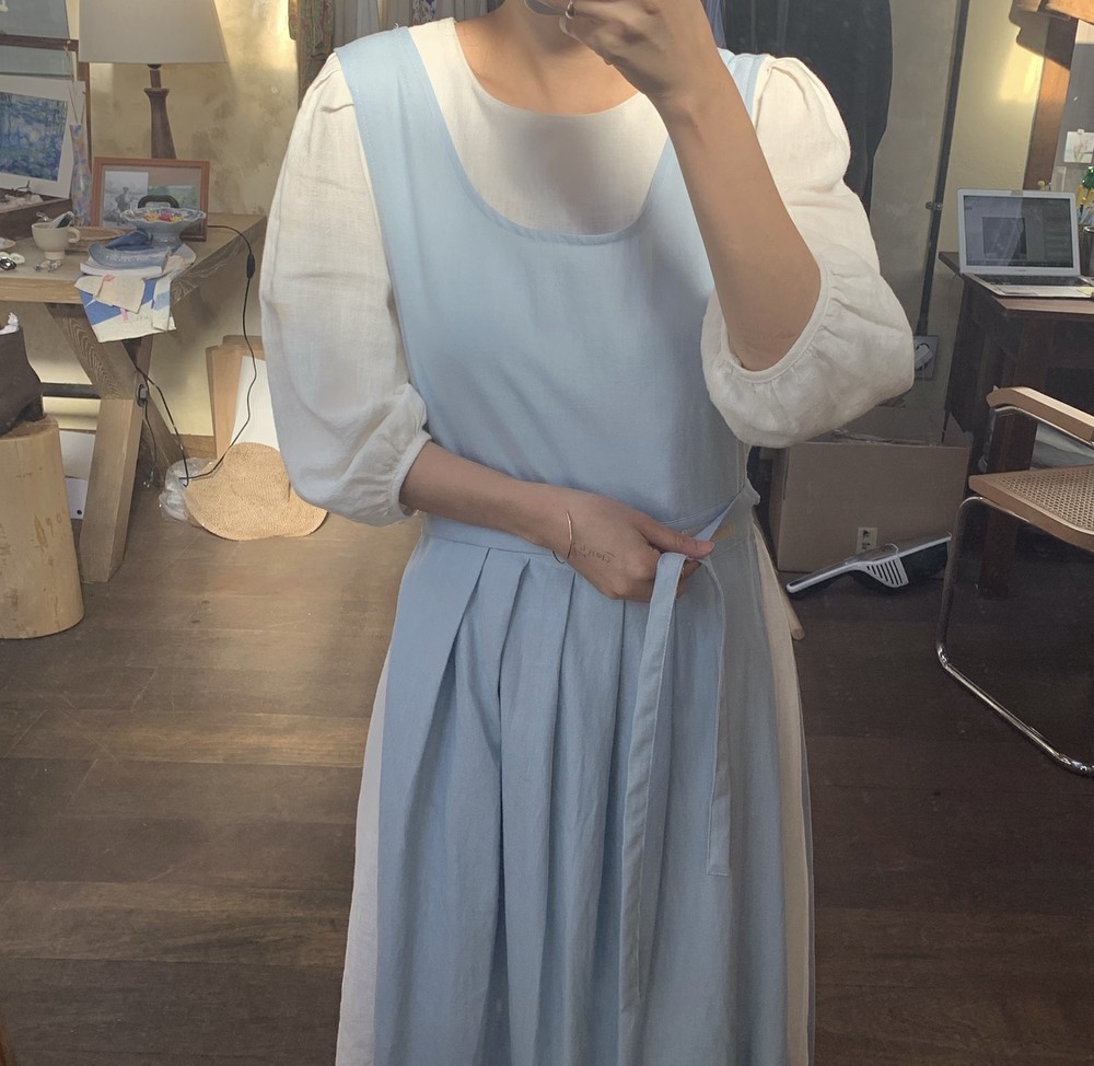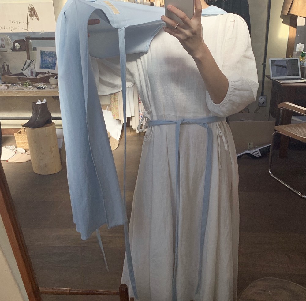 양 옆으로 끈을 묶으니 프리 사이즈 입니다.