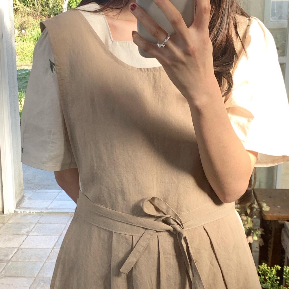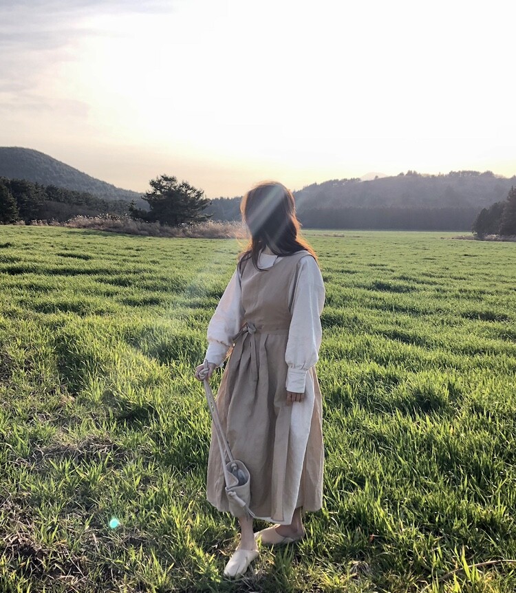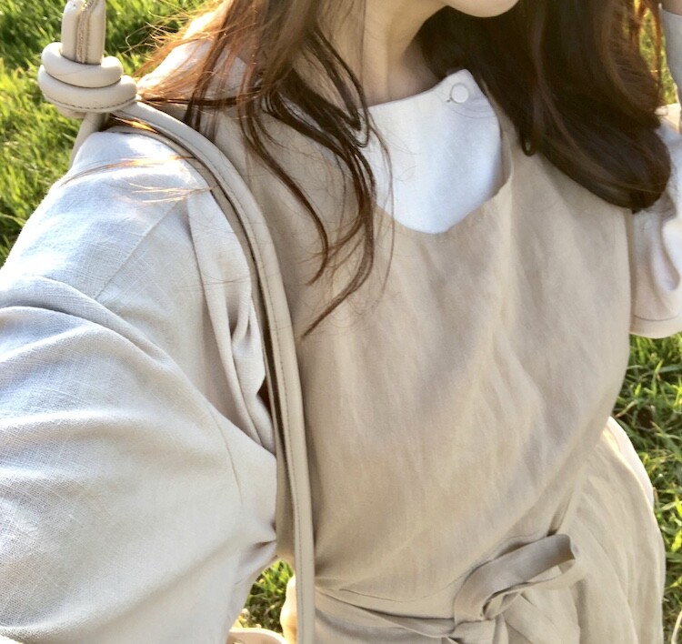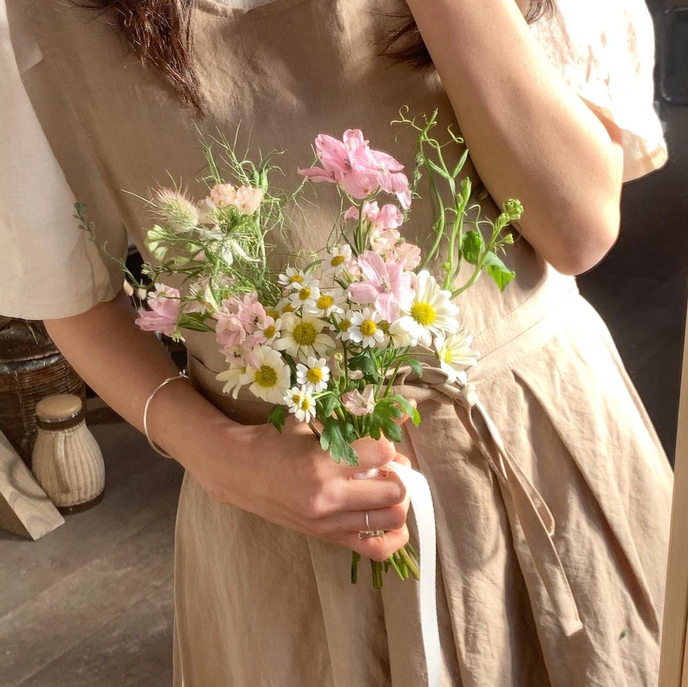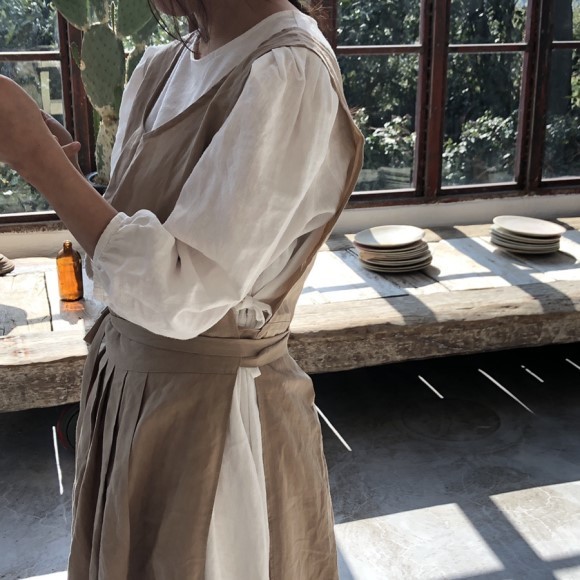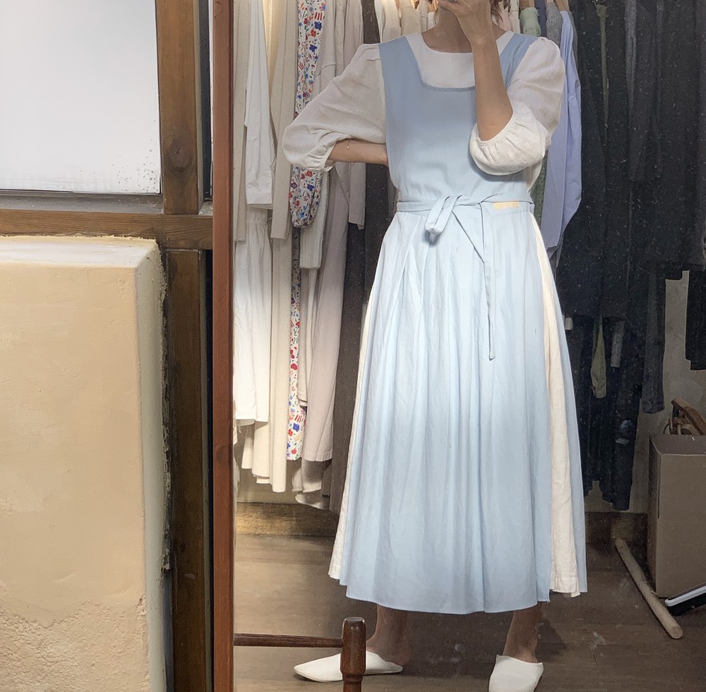 양 옆으로 끈을 묶으니 프리 사이즈 입니다.