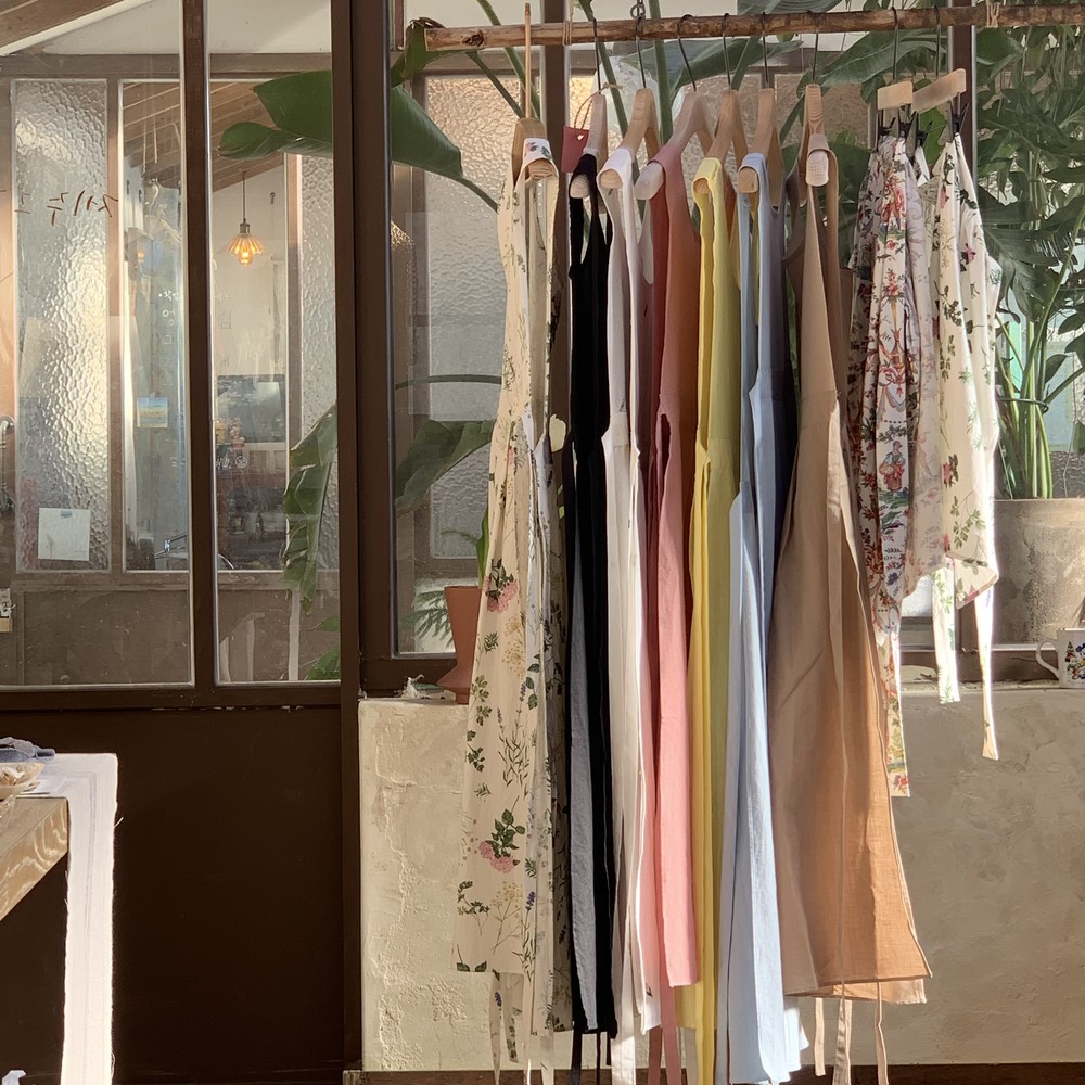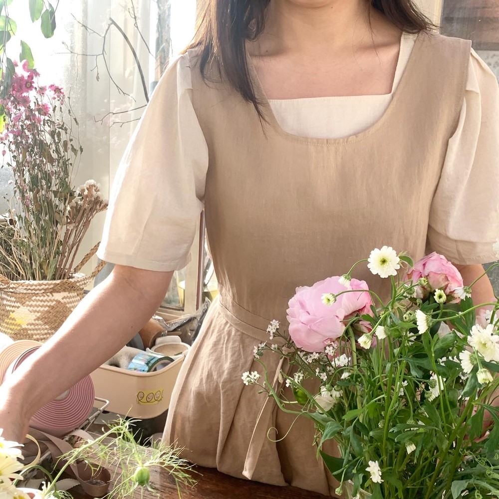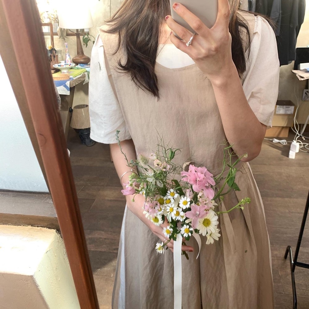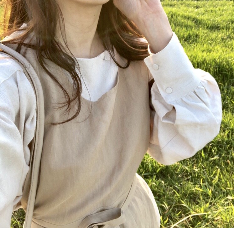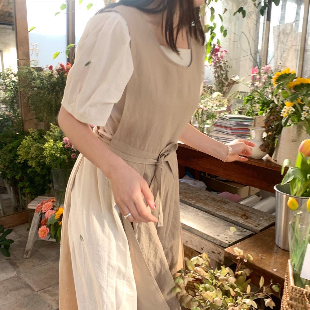 양 옆으로 끈을 묶으니 프리 사이즈 입니다.