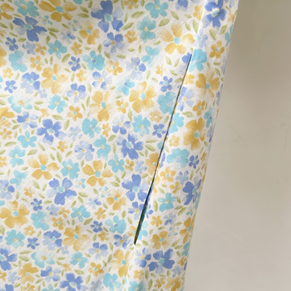 아이보리 컬러 바탕에 블루+옐로우 플라워패턴으로 밝고 경쾌한 무드를 즐기실 수 있어요