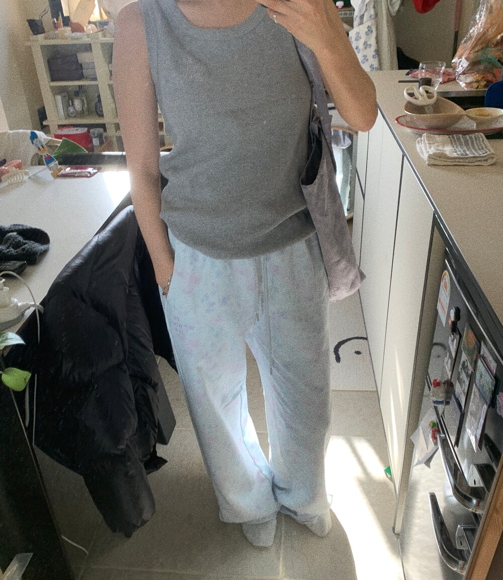 허리는 전체 밴딩입니다. 조금 낙낙한 편이에요 허리에 끈을 넣어주어 사이즈 조절이 가능합니다.