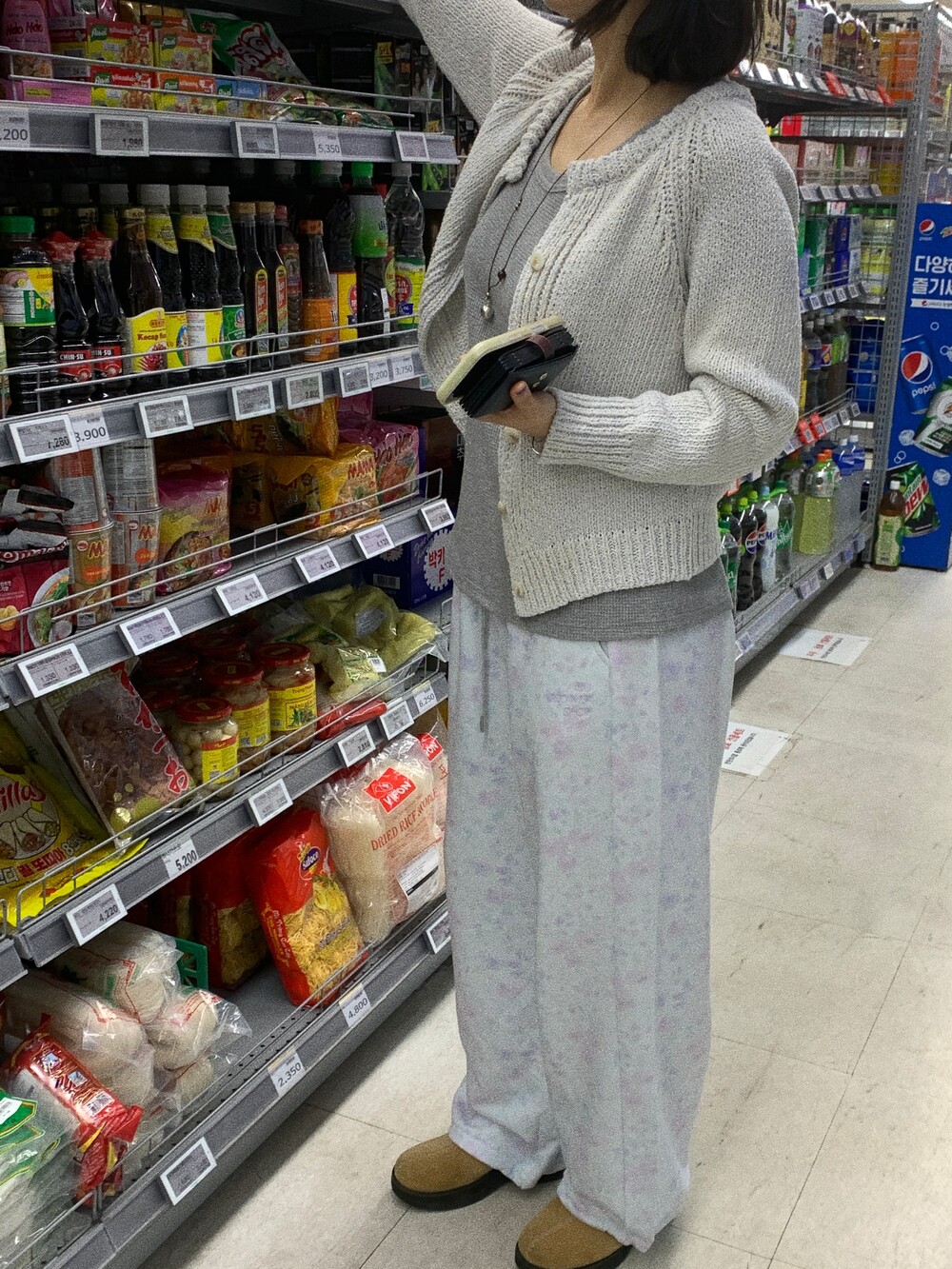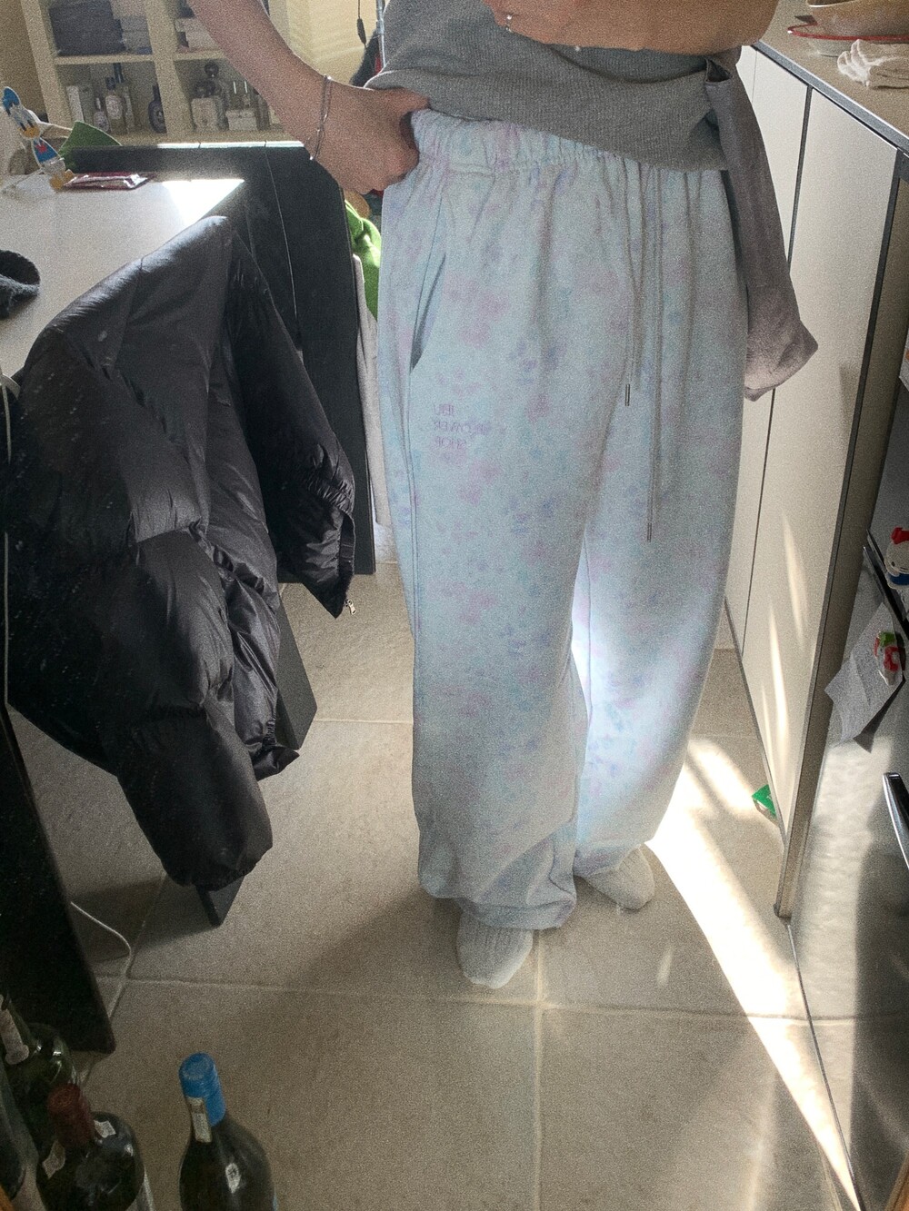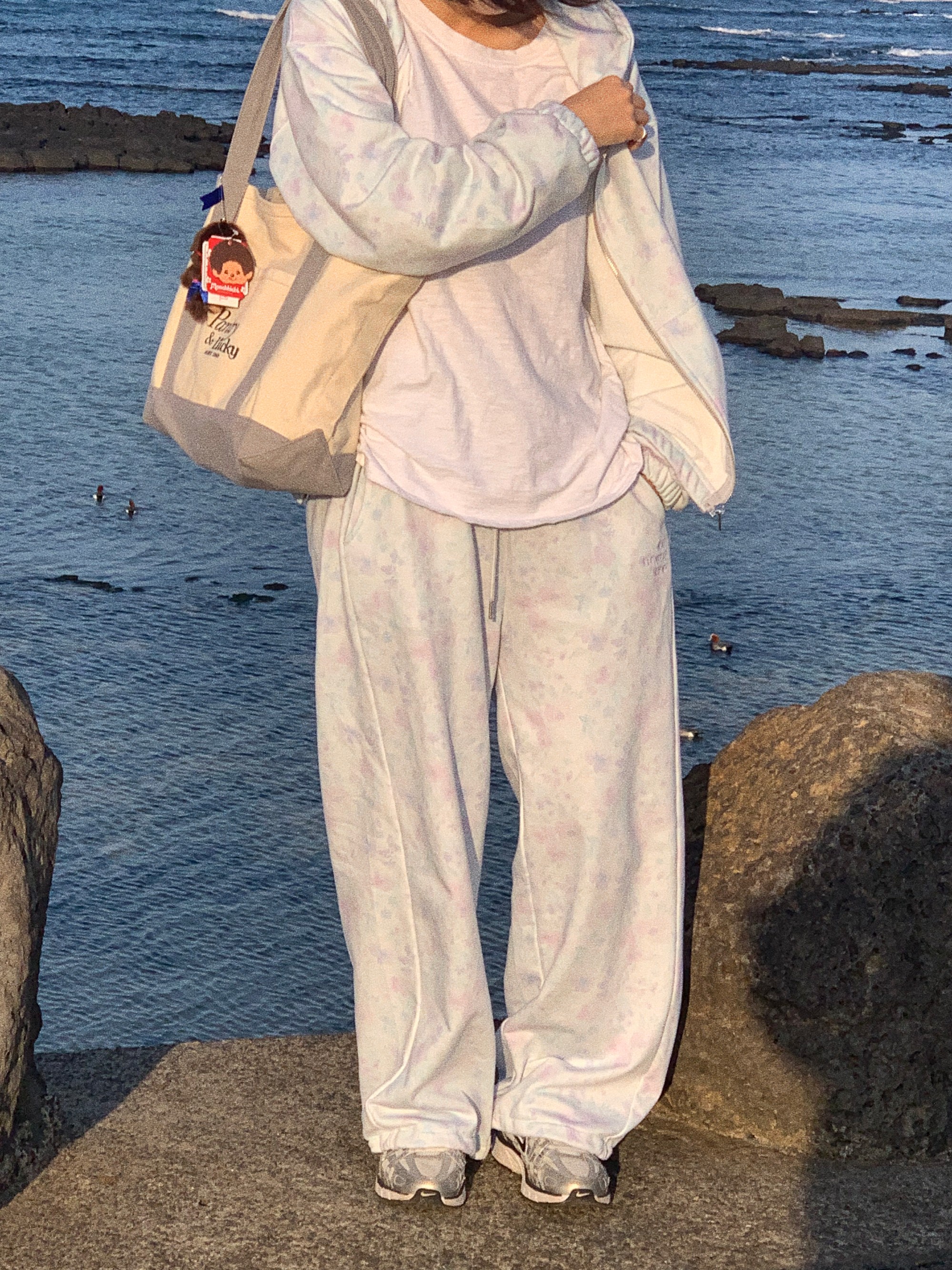 밑단 스트링을 넣어주어 조거처럼 연출 할 수 있구요. 또 풀어주면 스트레이트 핏이 가능합니다.