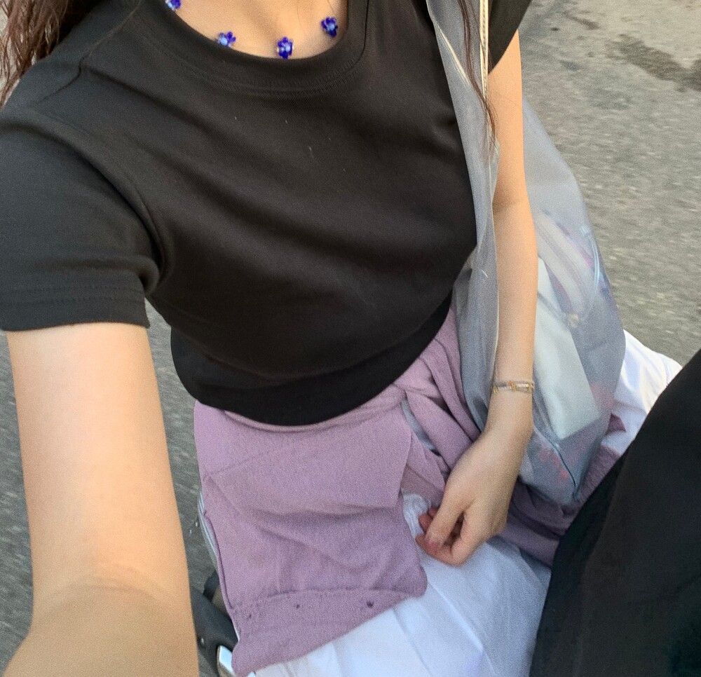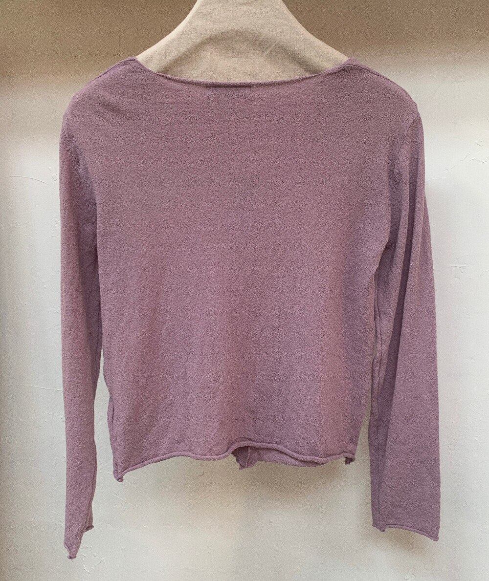 네크라인, 밑단과 소매끝은 돌돌 말리는 느낌으로 귀여우면서도 자연스러운 무드를 더해주었습니다