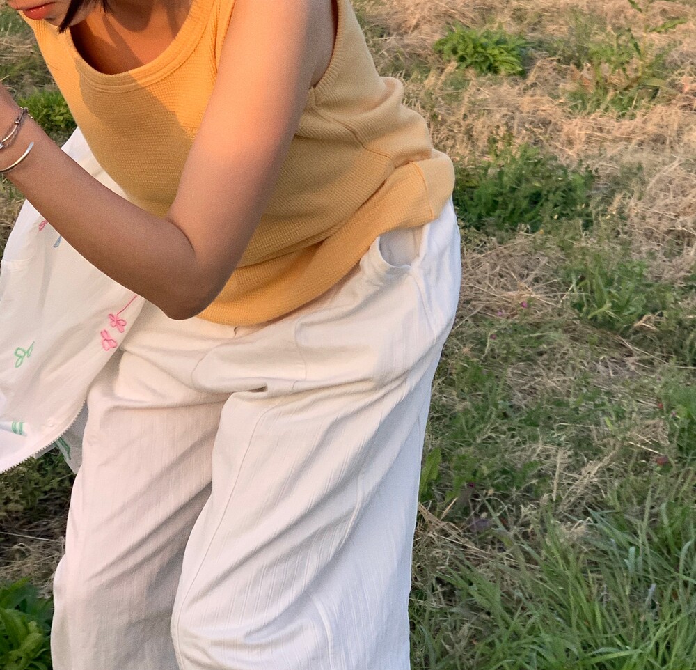 골지 조직 특성상 유연하게 늘어나 다양한 체형에 편안하게 맞춰지며, 단독 또는 이너로 활용하기 좋은 실루엣입니다.