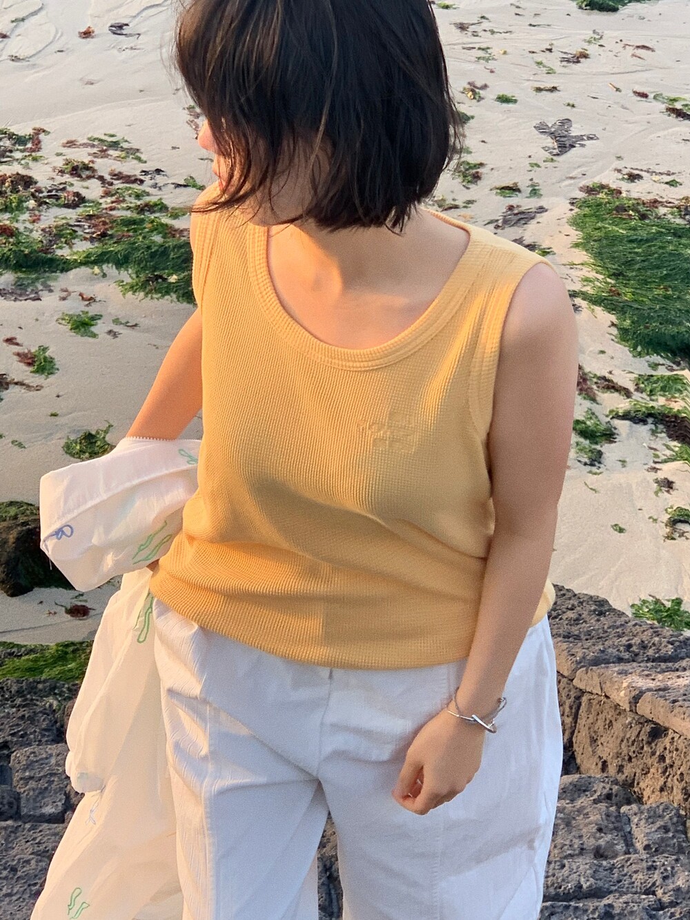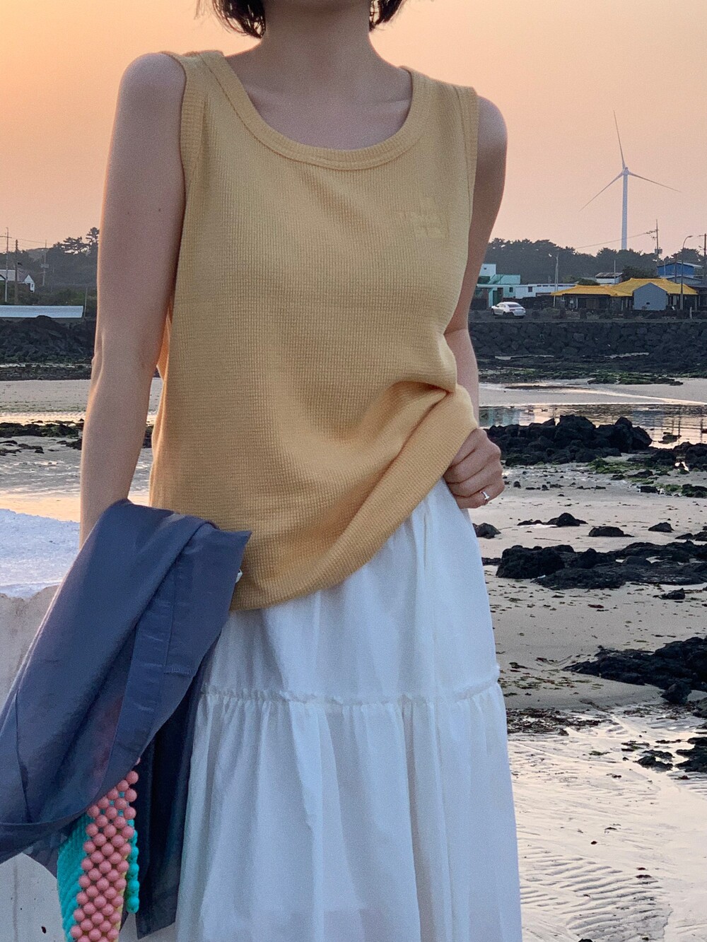 waffle sleeveless top / yellow