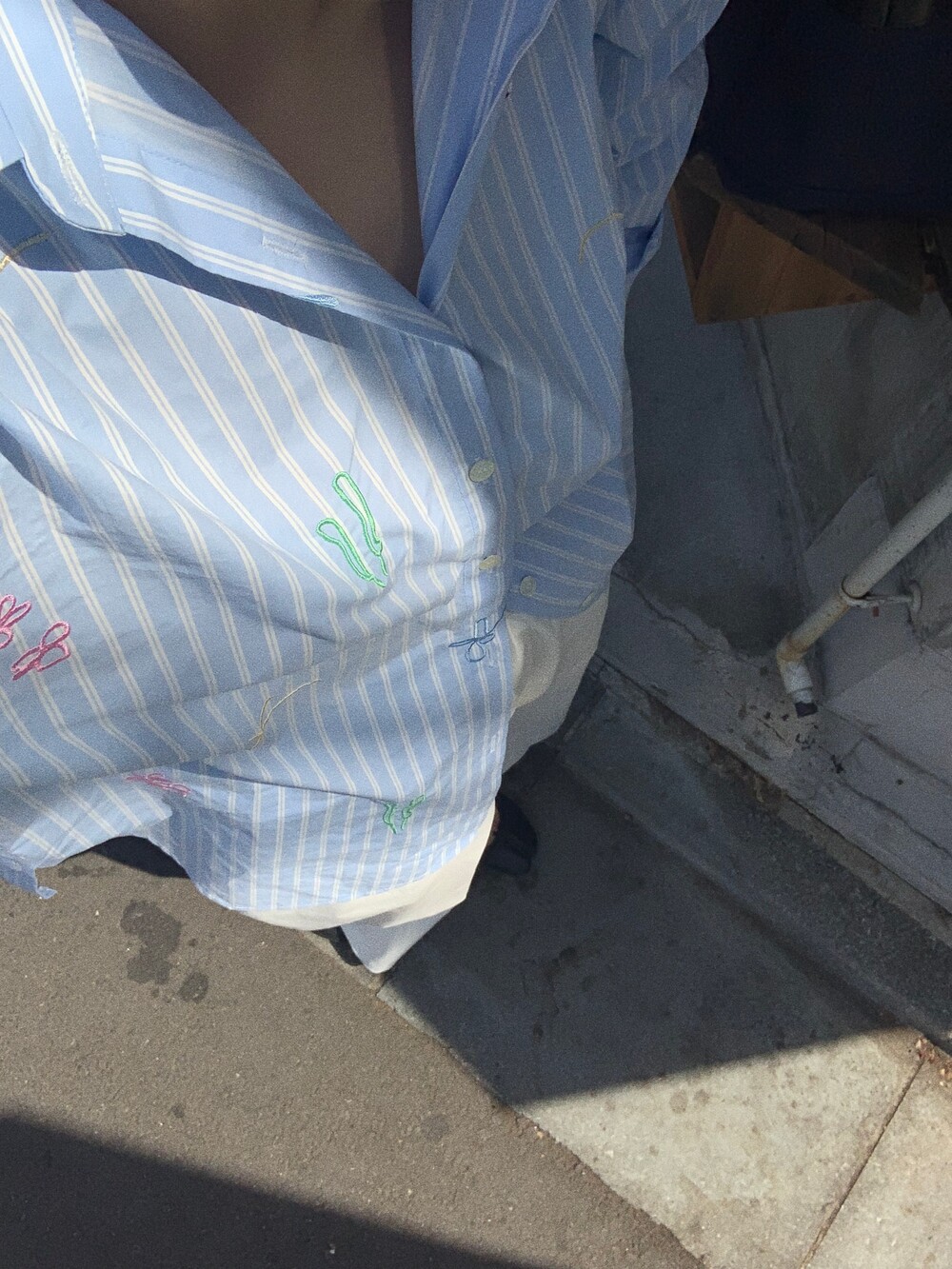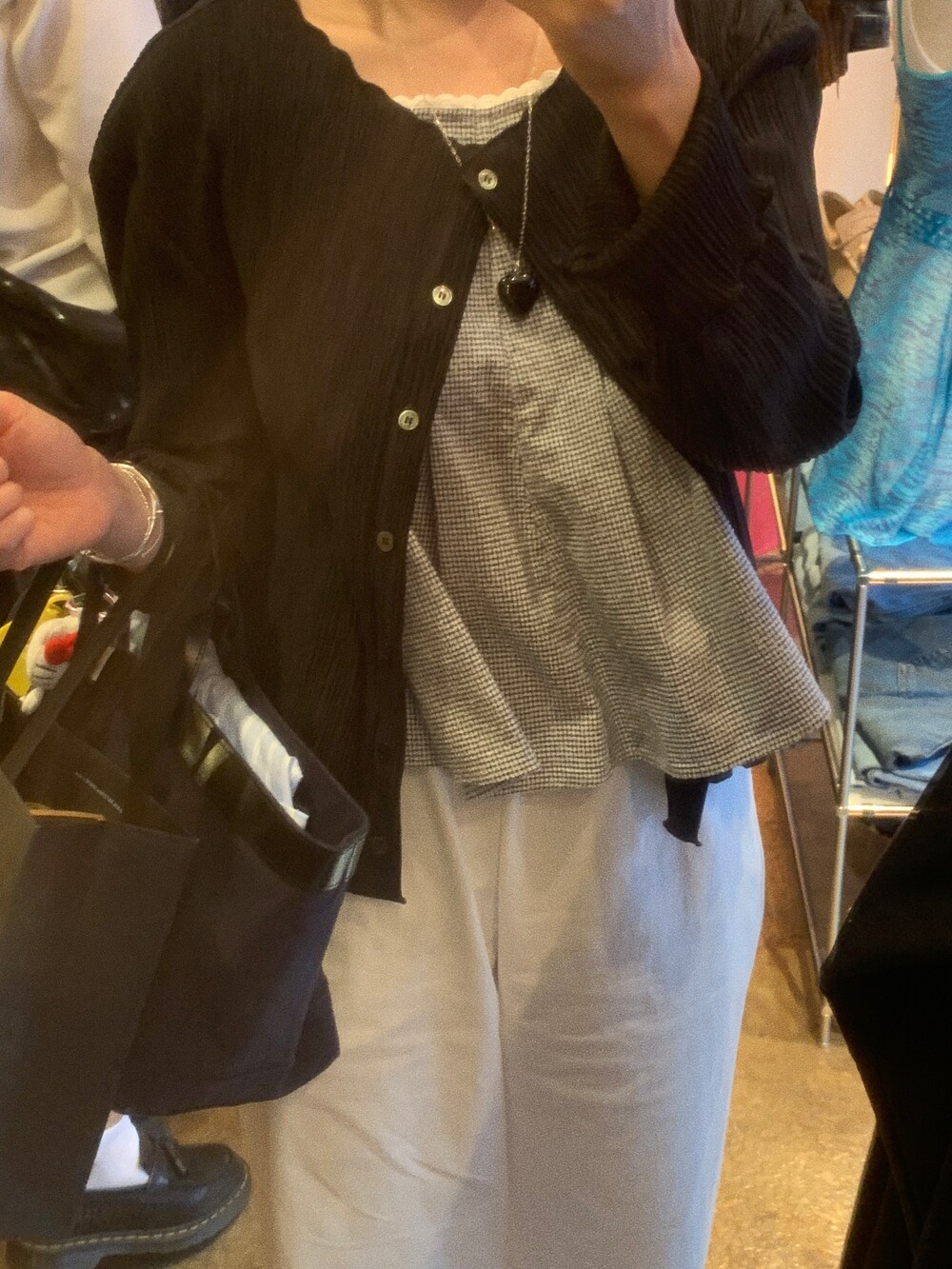 소재가 일반 코튼이 아닌 스판이 조금 들어가고, 또 자세히 보면 주름이 있어서 고급져요.