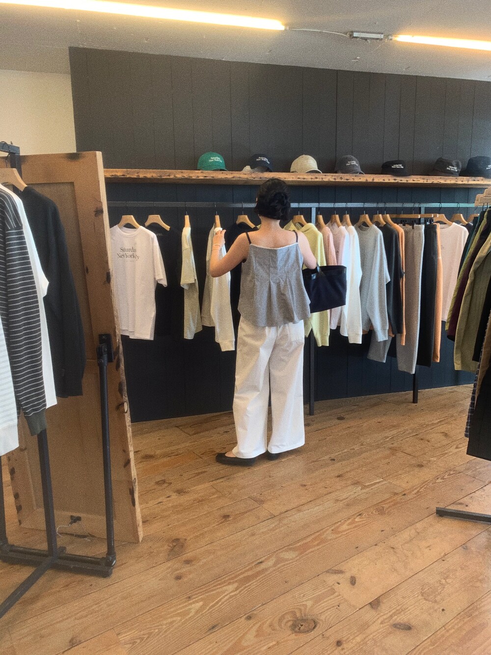저는 두세벌 소장하고 요즘 꾸준히 입고있어요. 마린 티에 입어도 예쁠 것 같구요! 레드 티셔츠도 잘 어울려요.