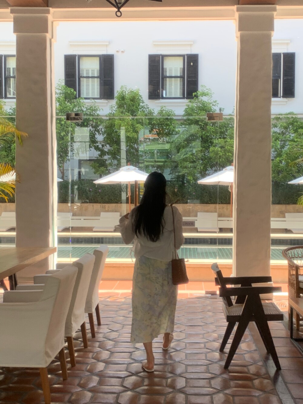 단정한 스퀘어넥은 원단을 한번 더 덧대주어 탄탄하게 마무리했고,