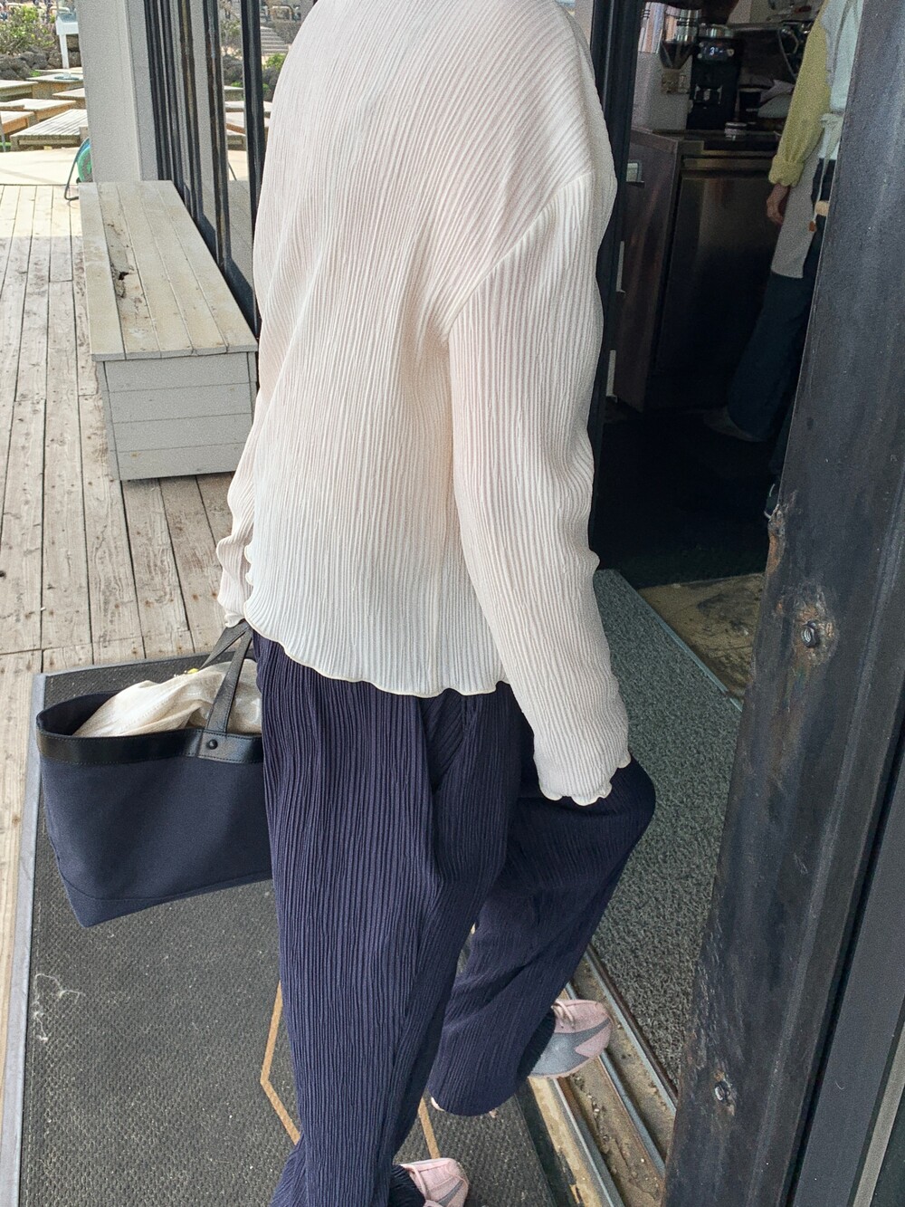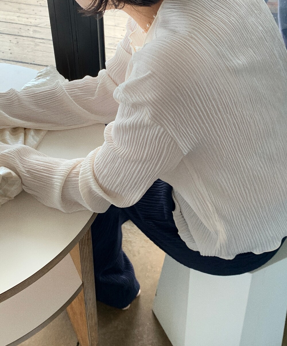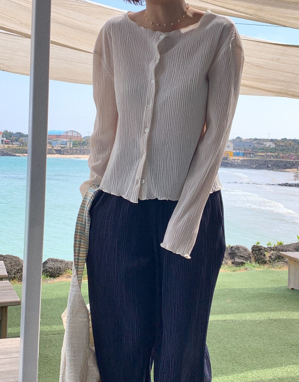 편안하면서도 고급스러운 플리츠 소재의 가디건이에요