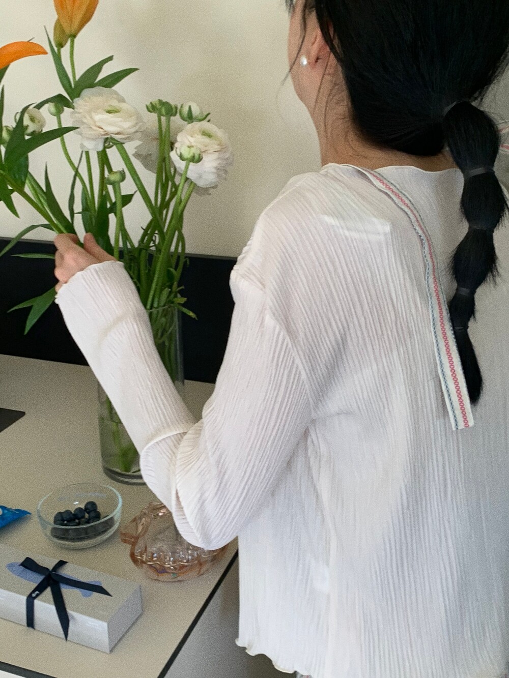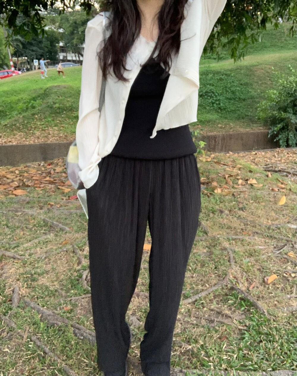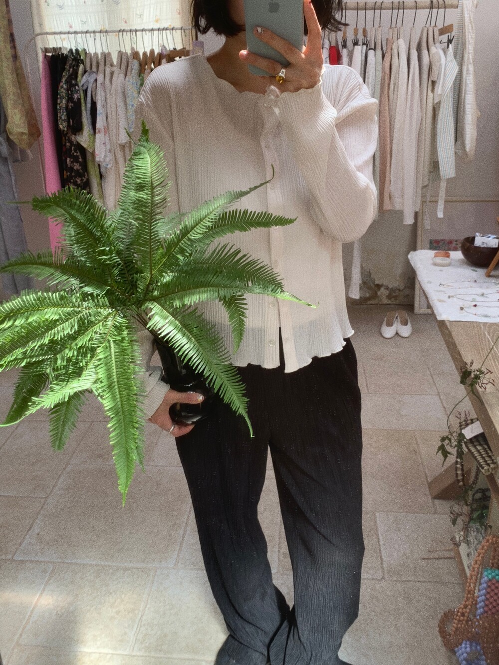 편안하면서도 고급스러운 플리츠 소재의 가디건이에요