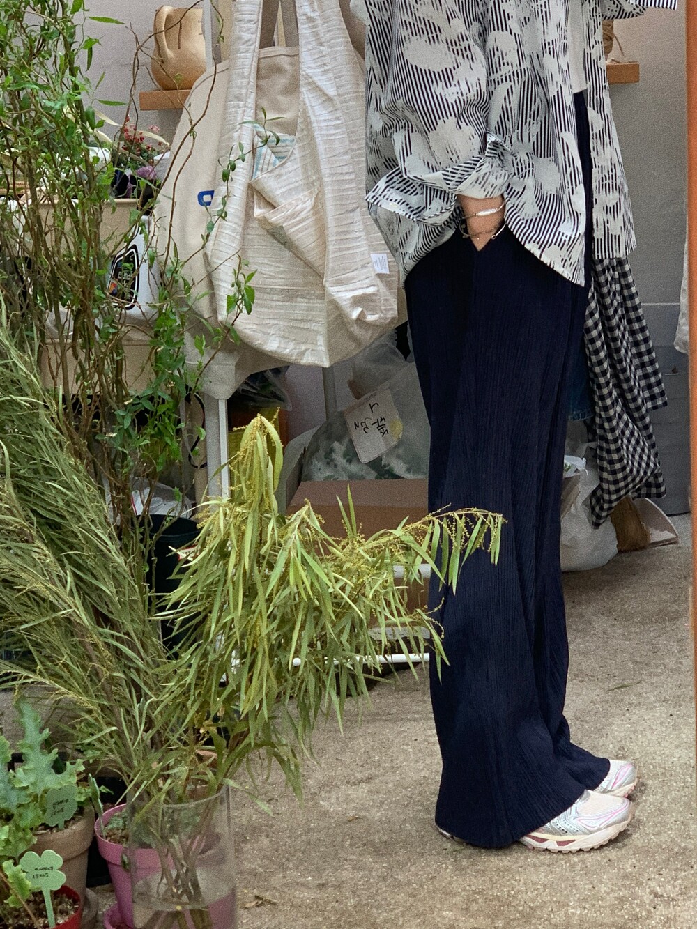 차르르 떨어지는 핏의 플리츠 팬츠를 만들었습니다