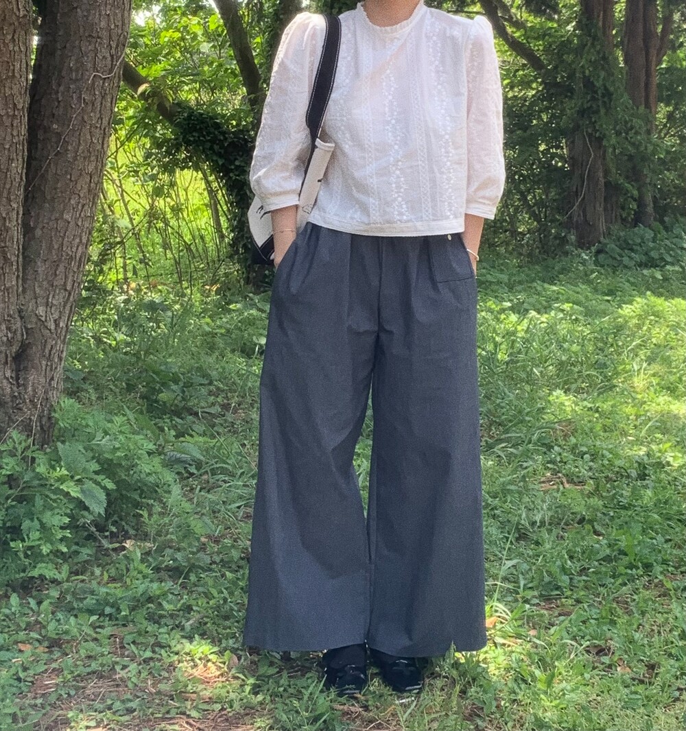 하의에 따라, 무드가 바뀌어 입는 재미가 있는 블라우스여요.