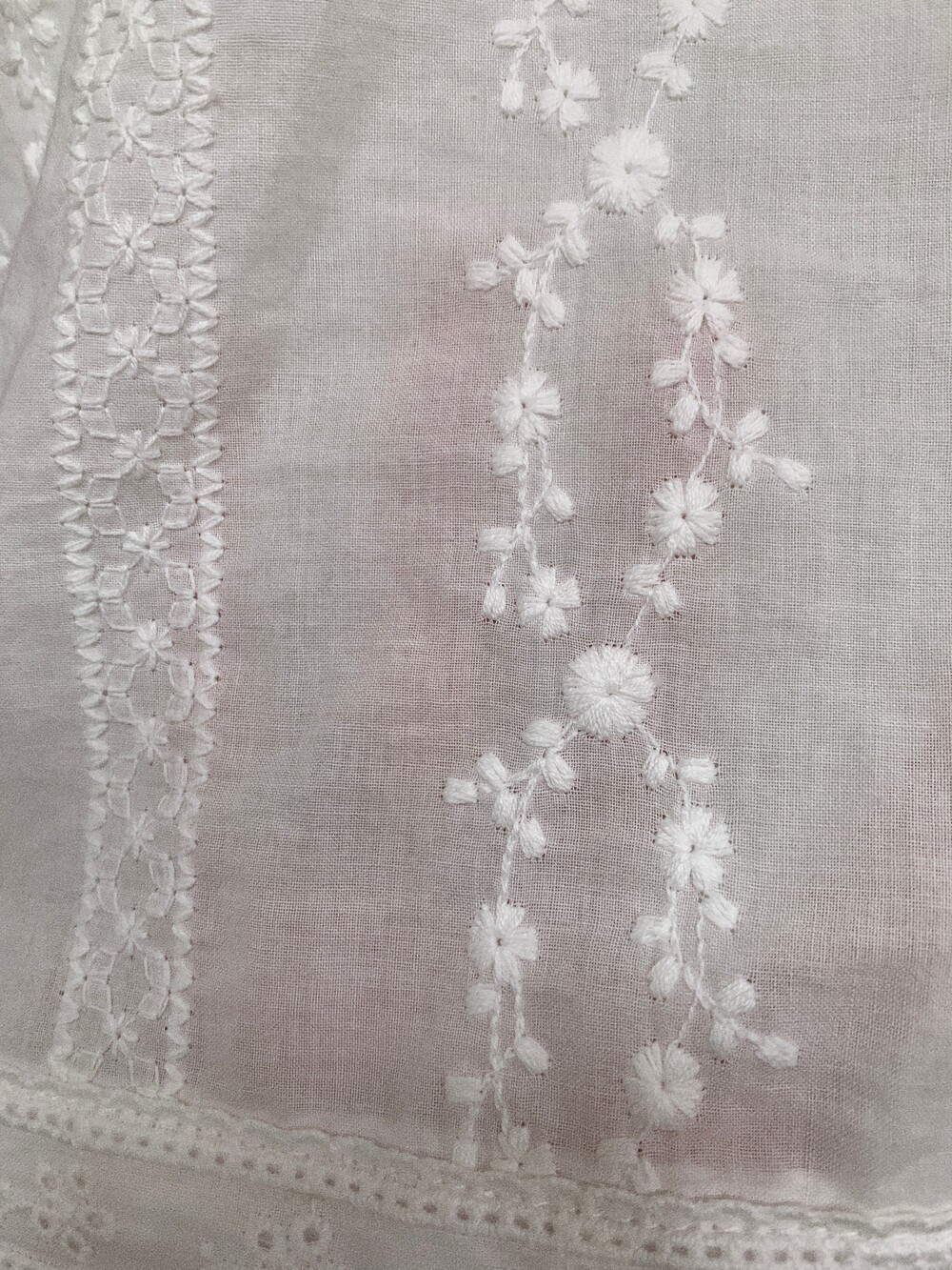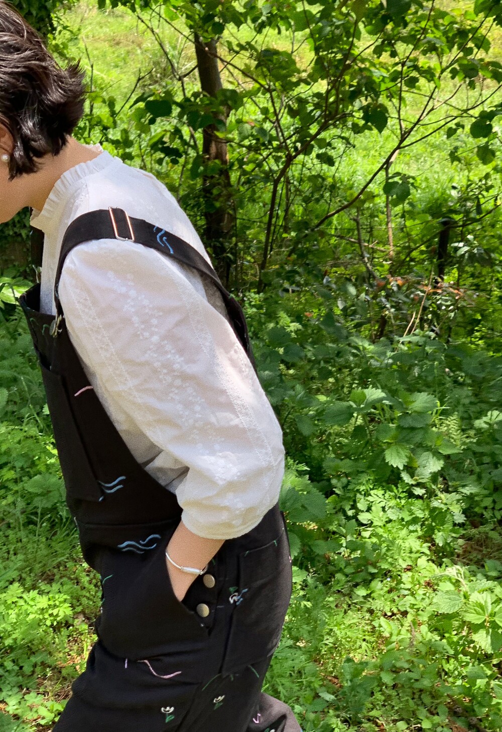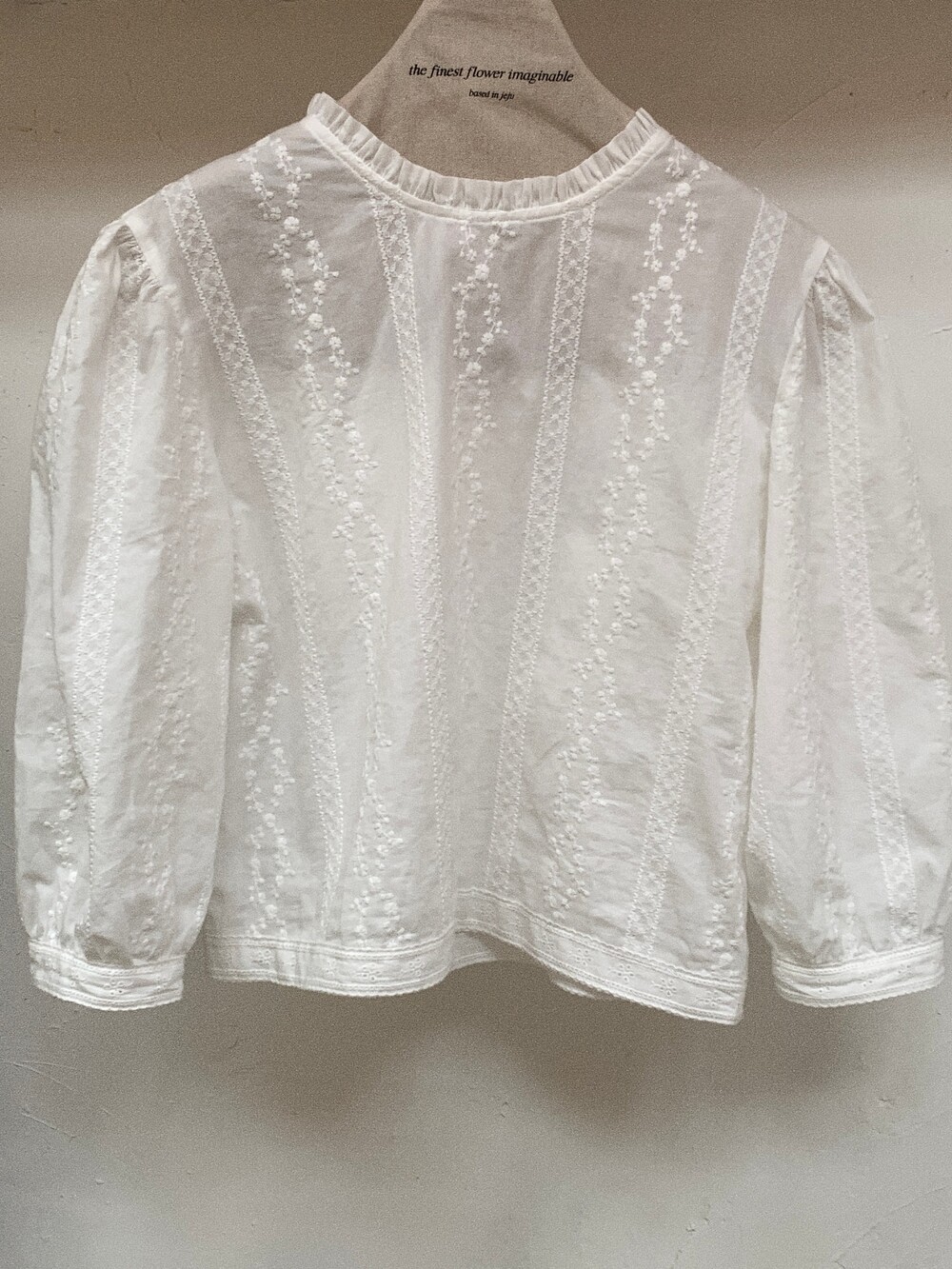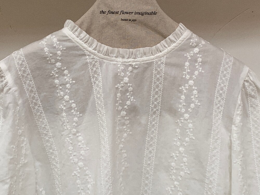 여러 가지의 입체적인 자수가 단조롭지 않고 사랑스러운 분위기를 연출해줍니다