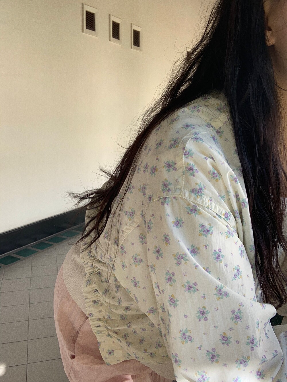 잔잔한 플로럴 패턴의 나일론 소재에요.