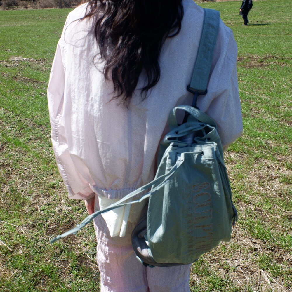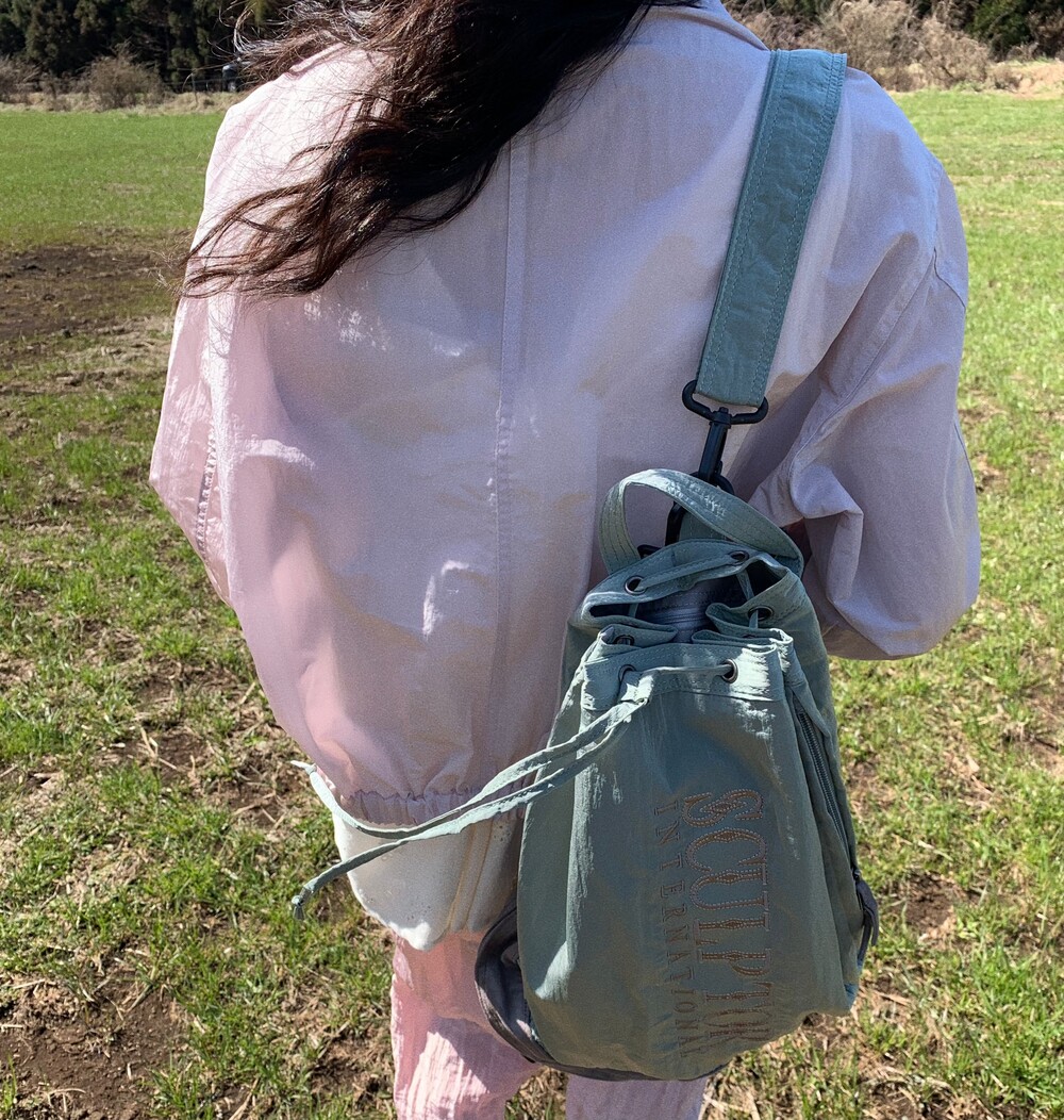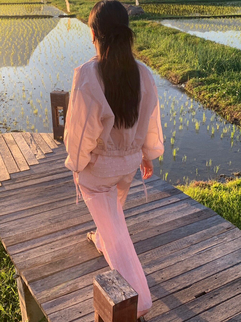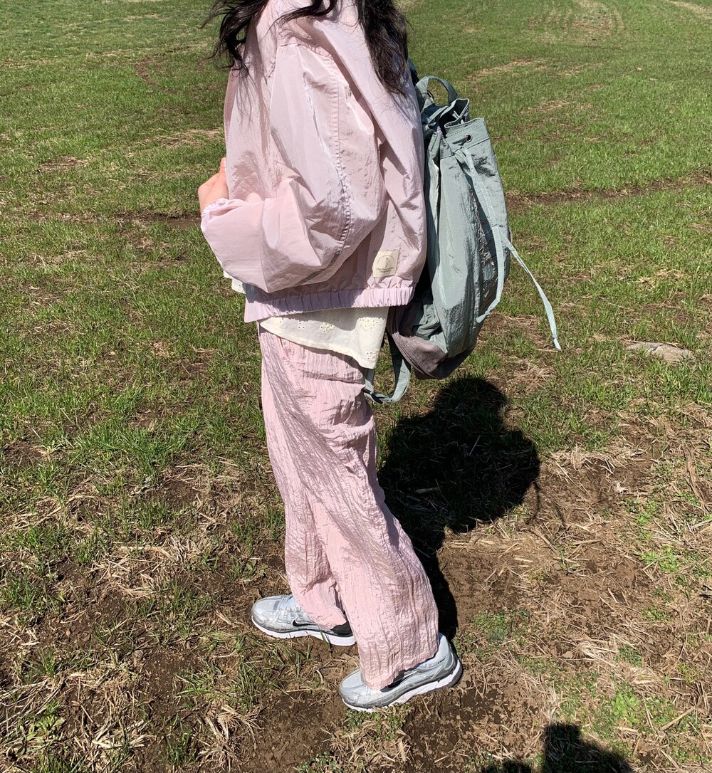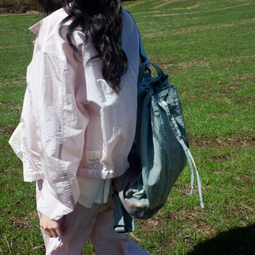 차분한 핑크컬러의 리사이클 나일론 소재에요.