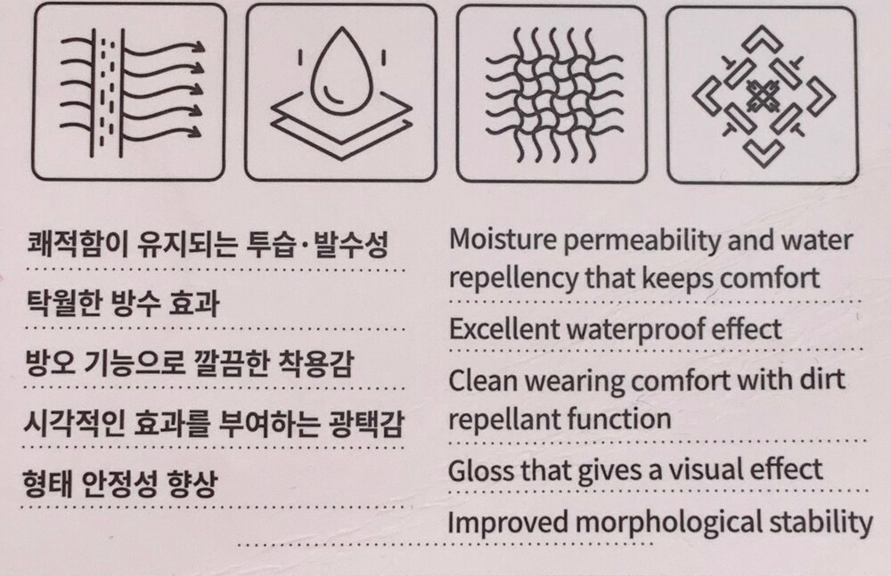 친환경적 특수 기능성 코팅 원단으로 쉽게 오염되지 않으며 탁월한 방수 효과가 있습니다